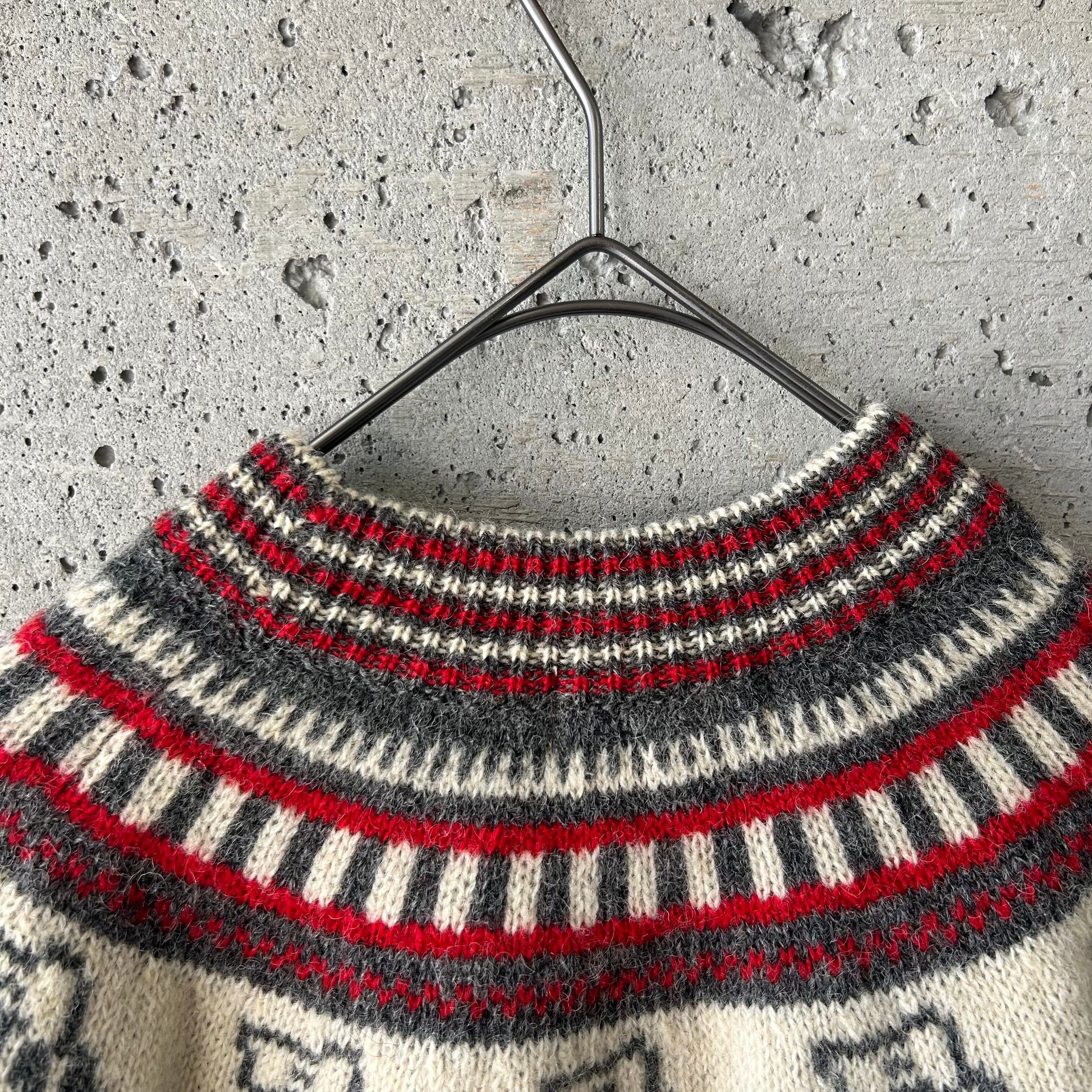犬のような模様が編まれたニットです。