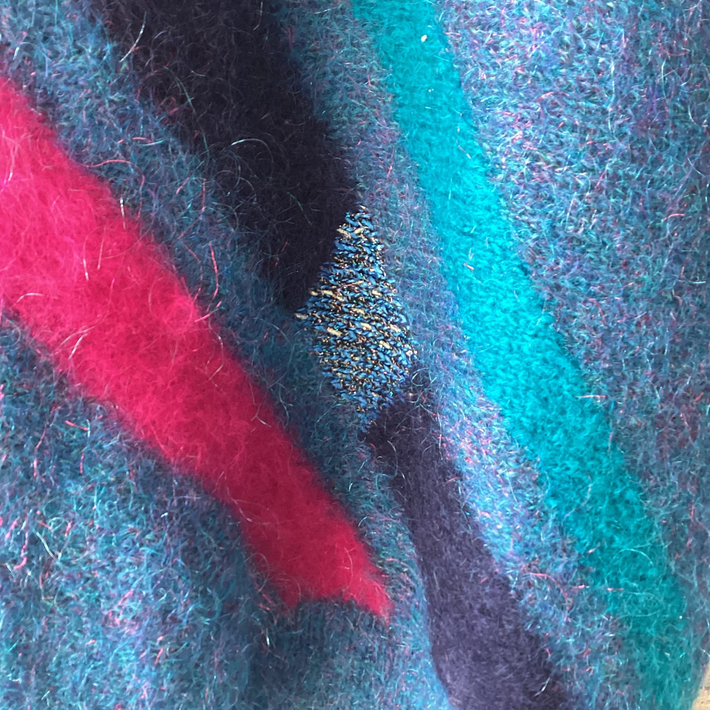 オーロラの糸が混じったモヘヤニットをベースに、6種類のニットが編み込まれています