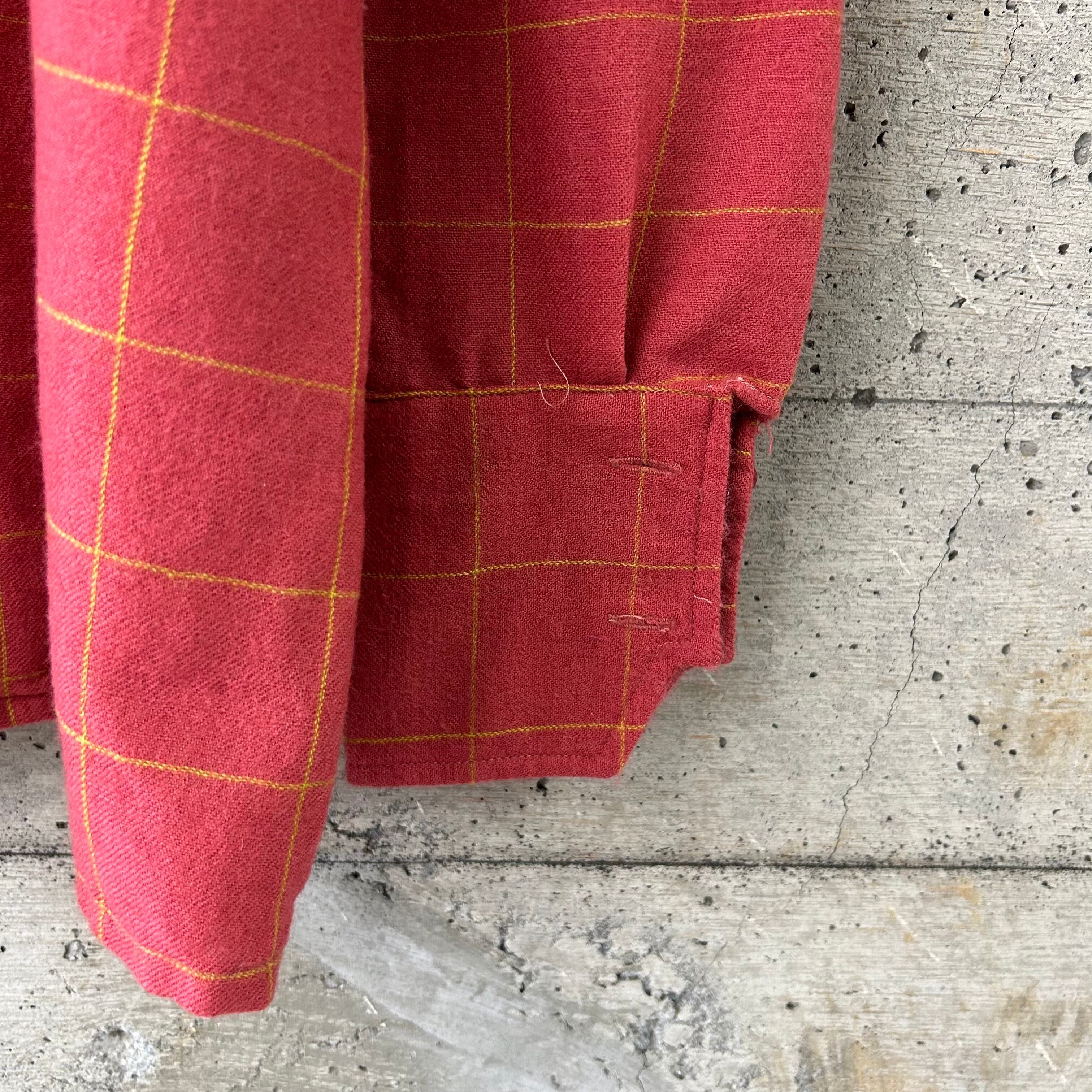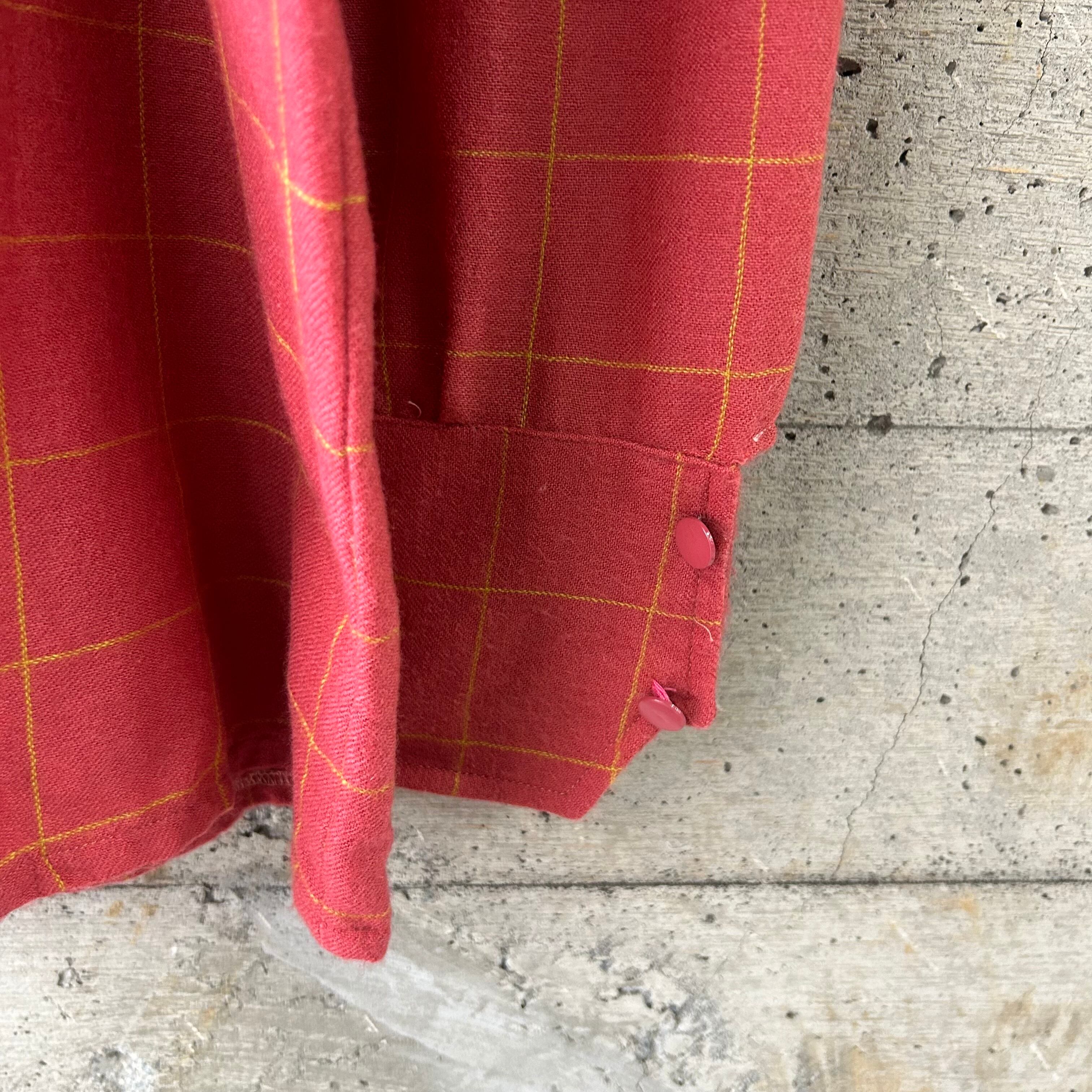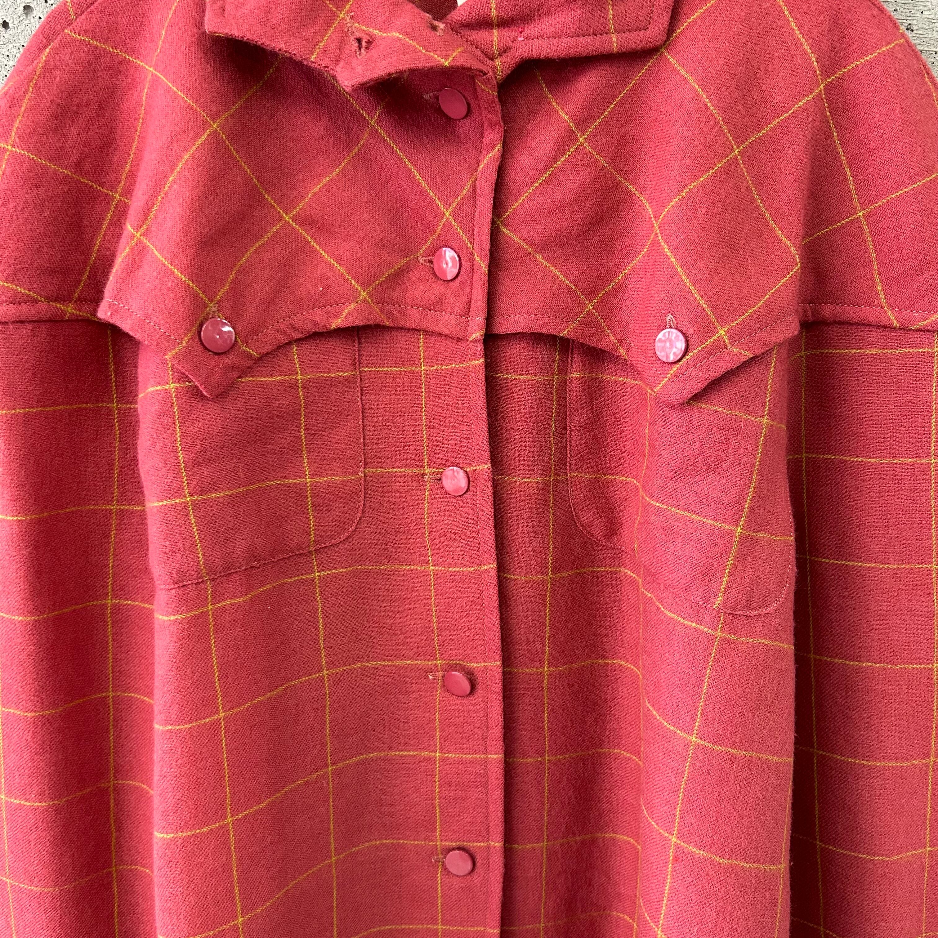 サーモンピンクにマスタード色のラインが可愛らしいシャツです。