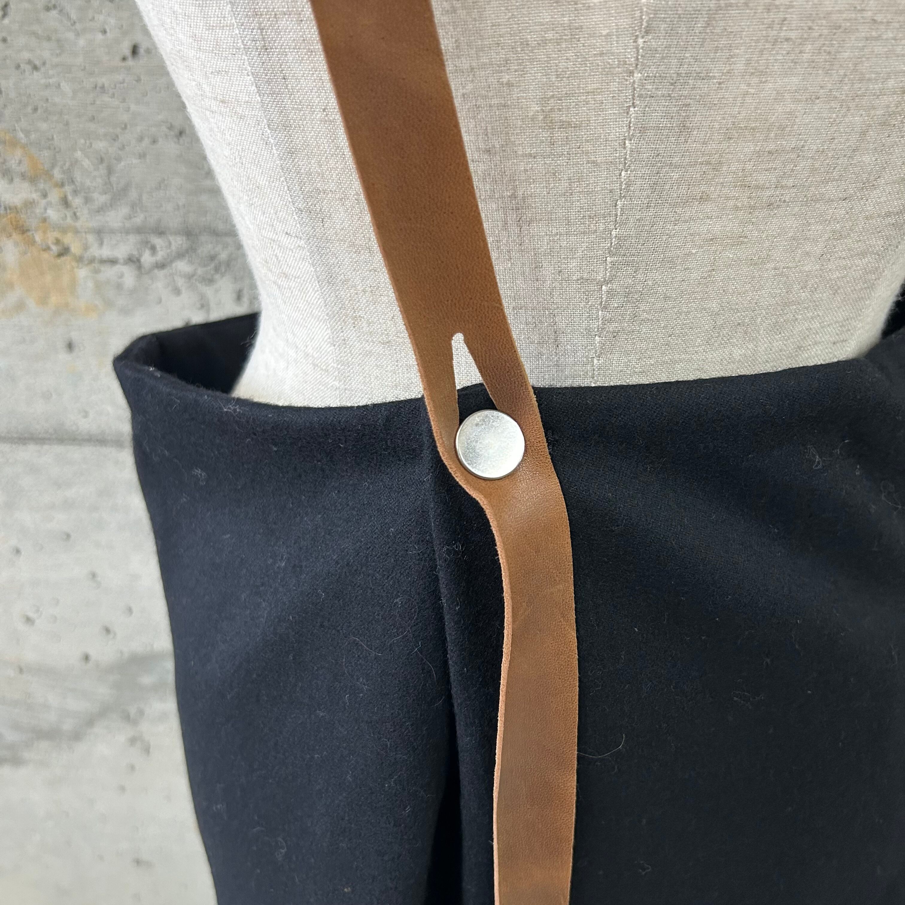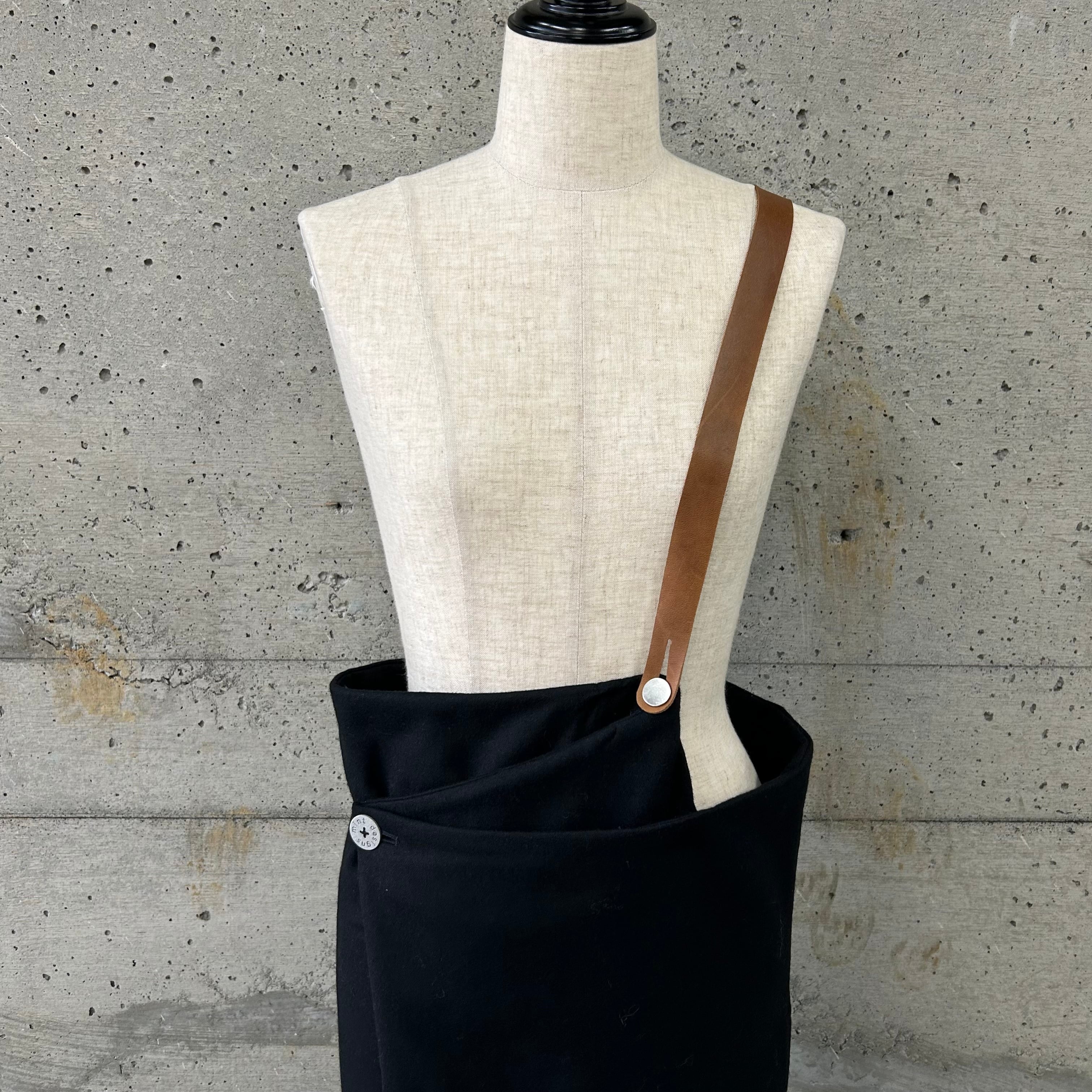 革のサスペンダーで吊るすようなデザインが素敵です。