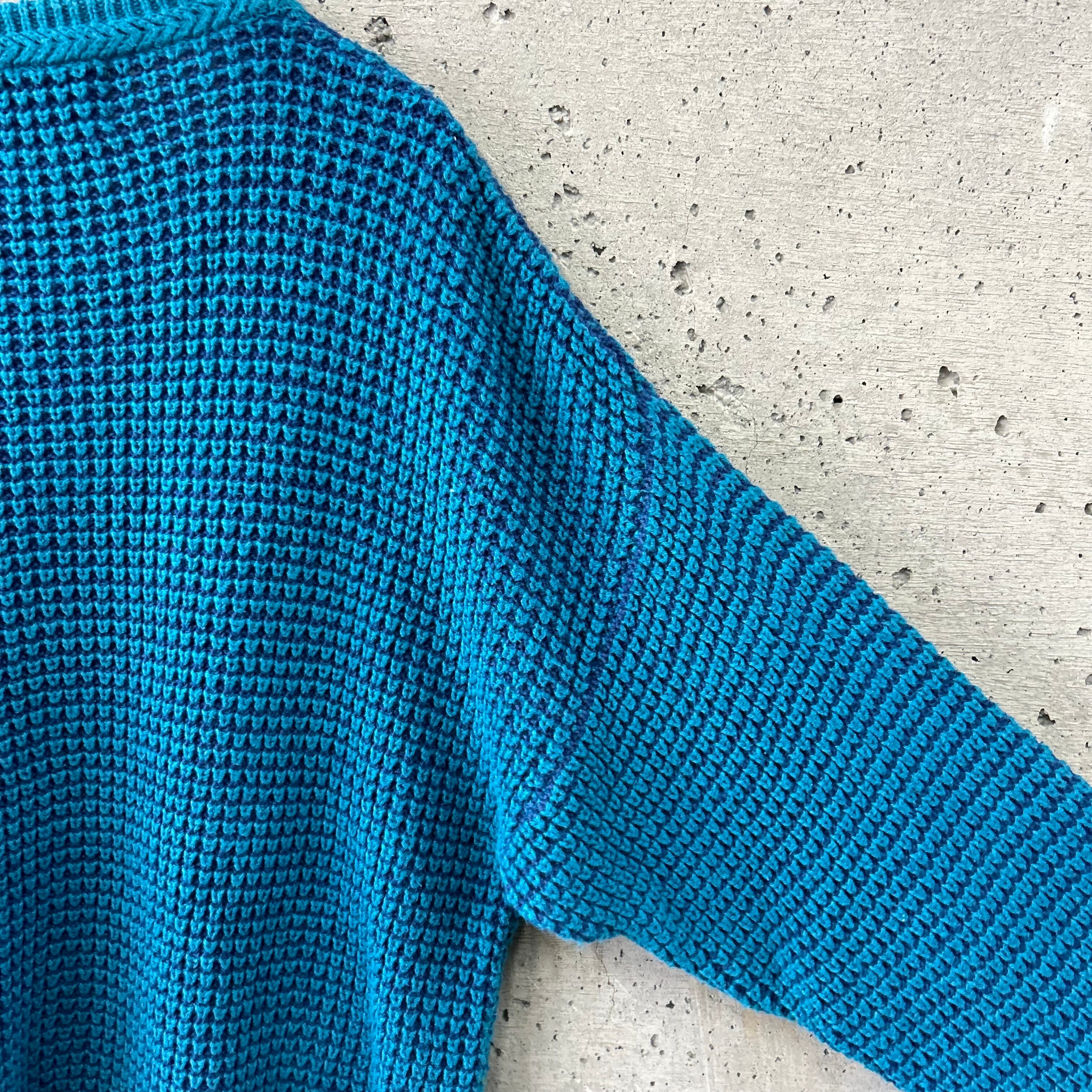 水色の方が前に出るような編み方がされており、立体的に見えます。