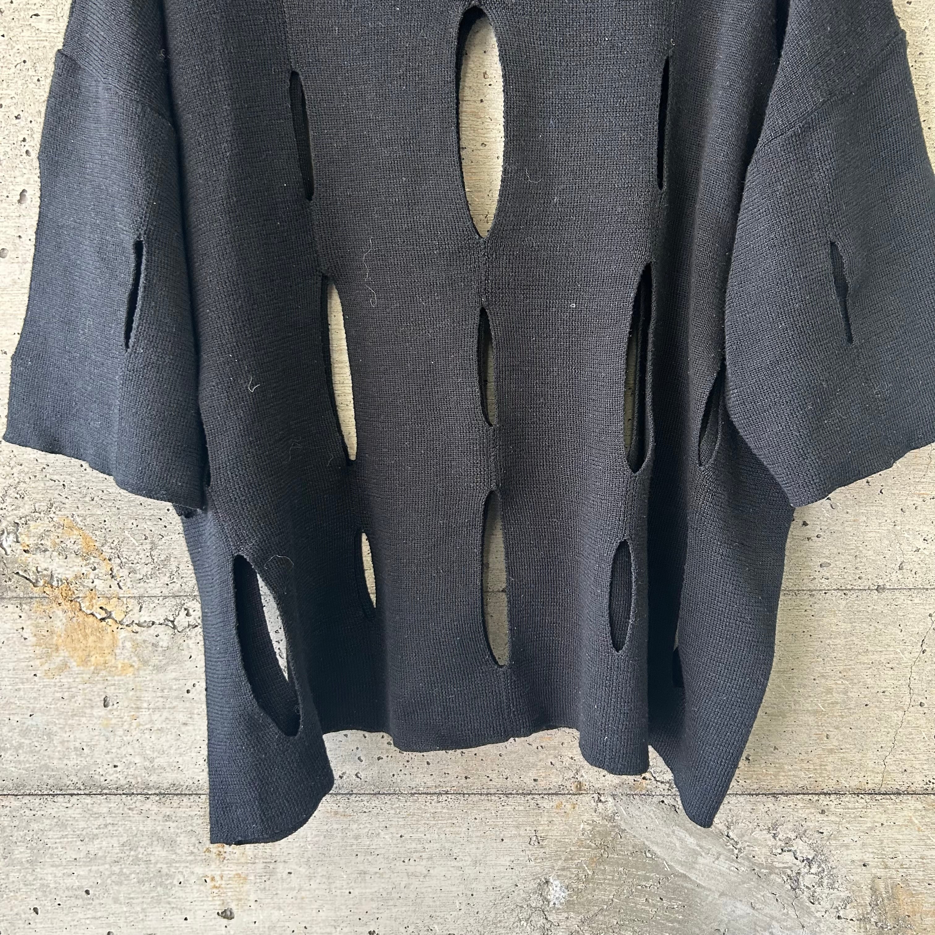 規則的に穴が開けられた半袖のニットです。
