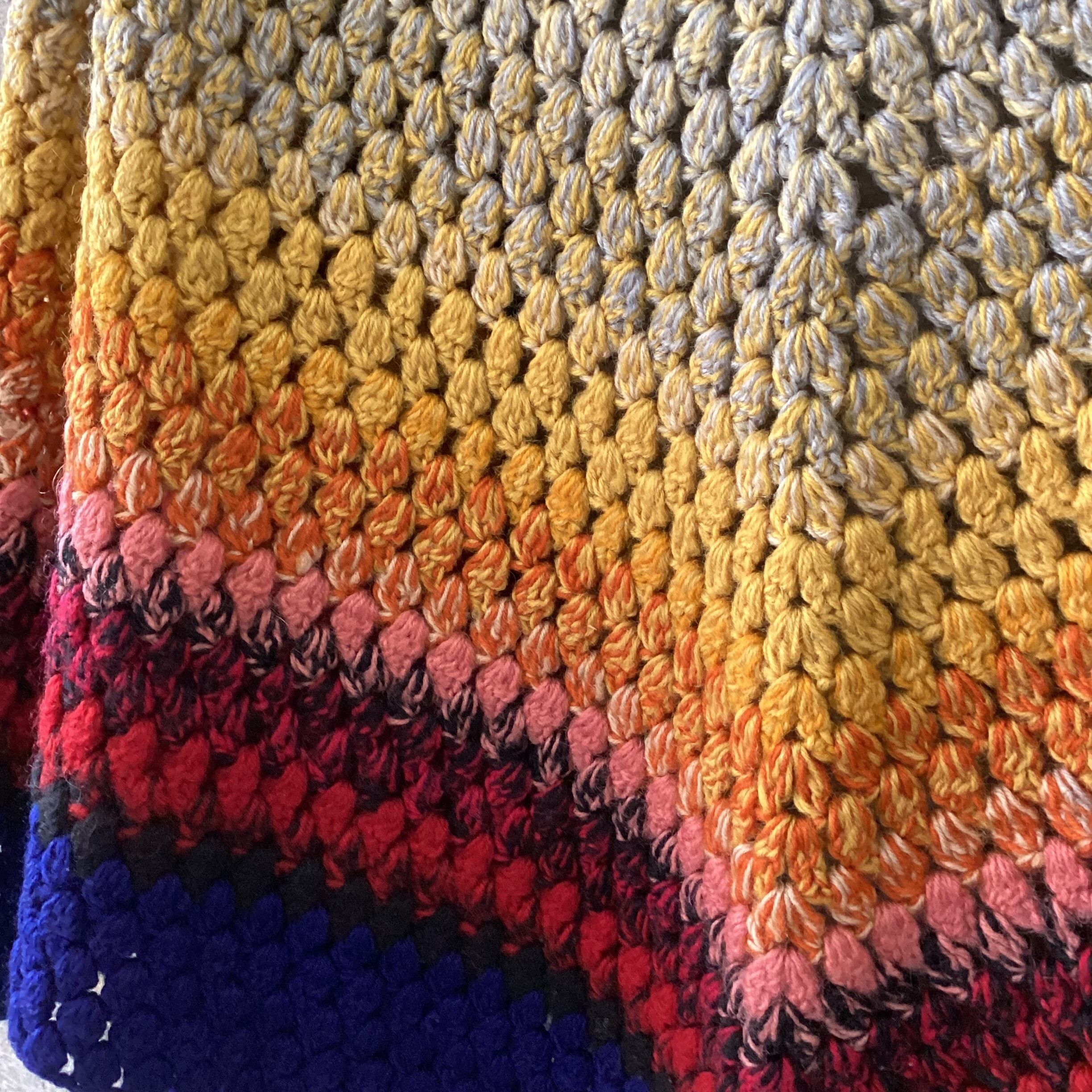 色が変わる境目部分は、2つの色を混ぜた毛糸を使っています