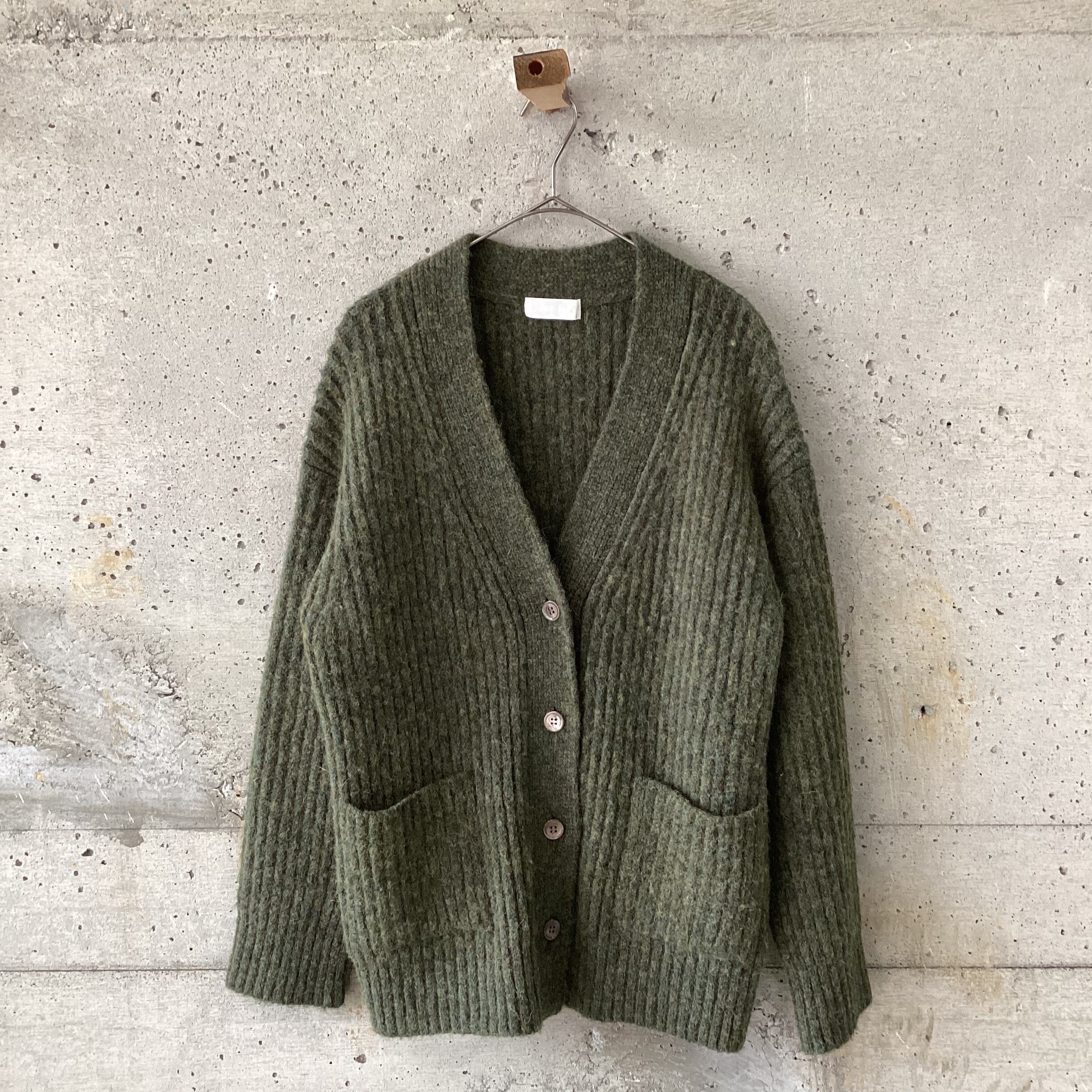 様々なカーキ色が混じった毛糸で編まれています