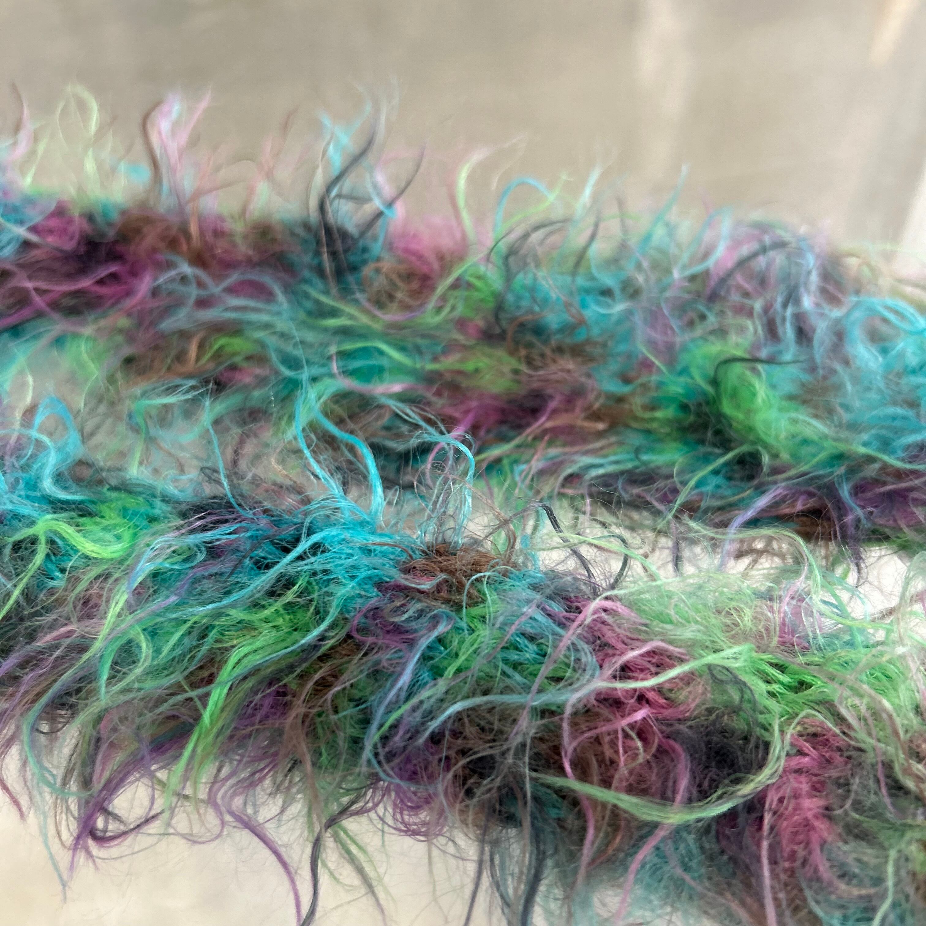 とても毛足が長いモヘアの糸であ編まれており、ふわふわもこもこな触り心地です。