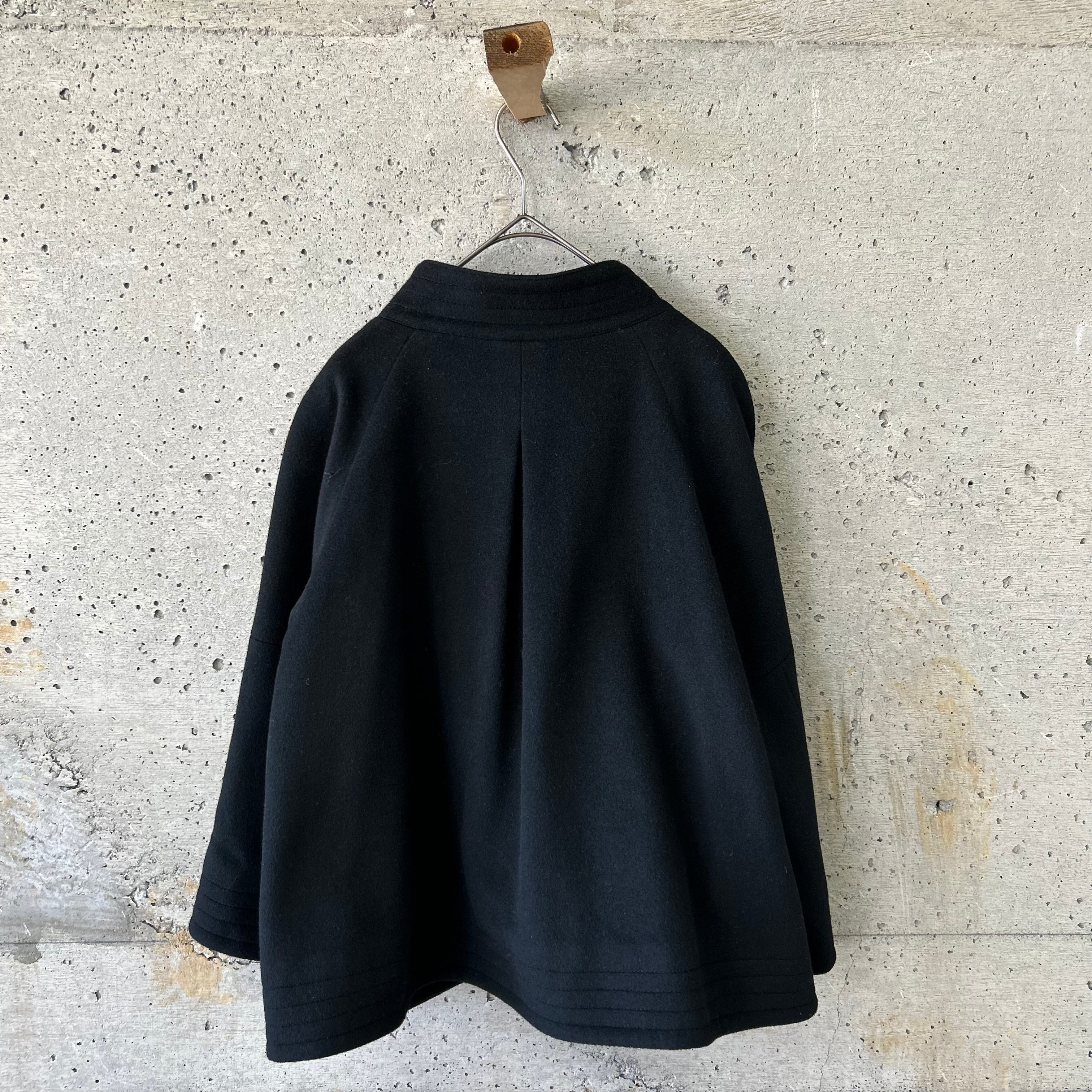 スタンドカラーで、袖先や裾先が広がるような形になっているのでとてもぽリュームがあり可愛いシルエットになります。