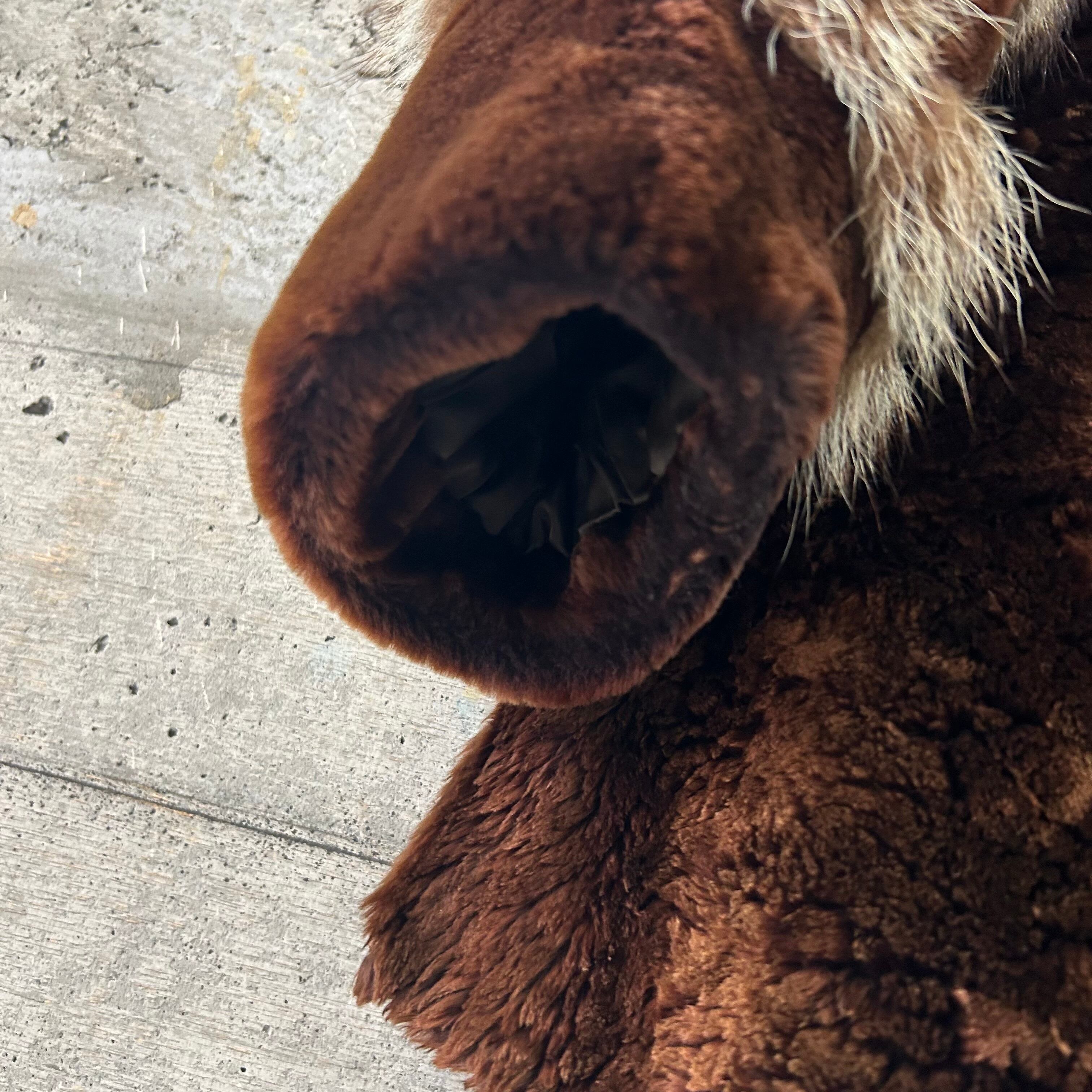 全体的に濃いブラウンですが、袖は、肩から袖先にかけてグラデーションのように毛足が長いファーが取り付けられています。