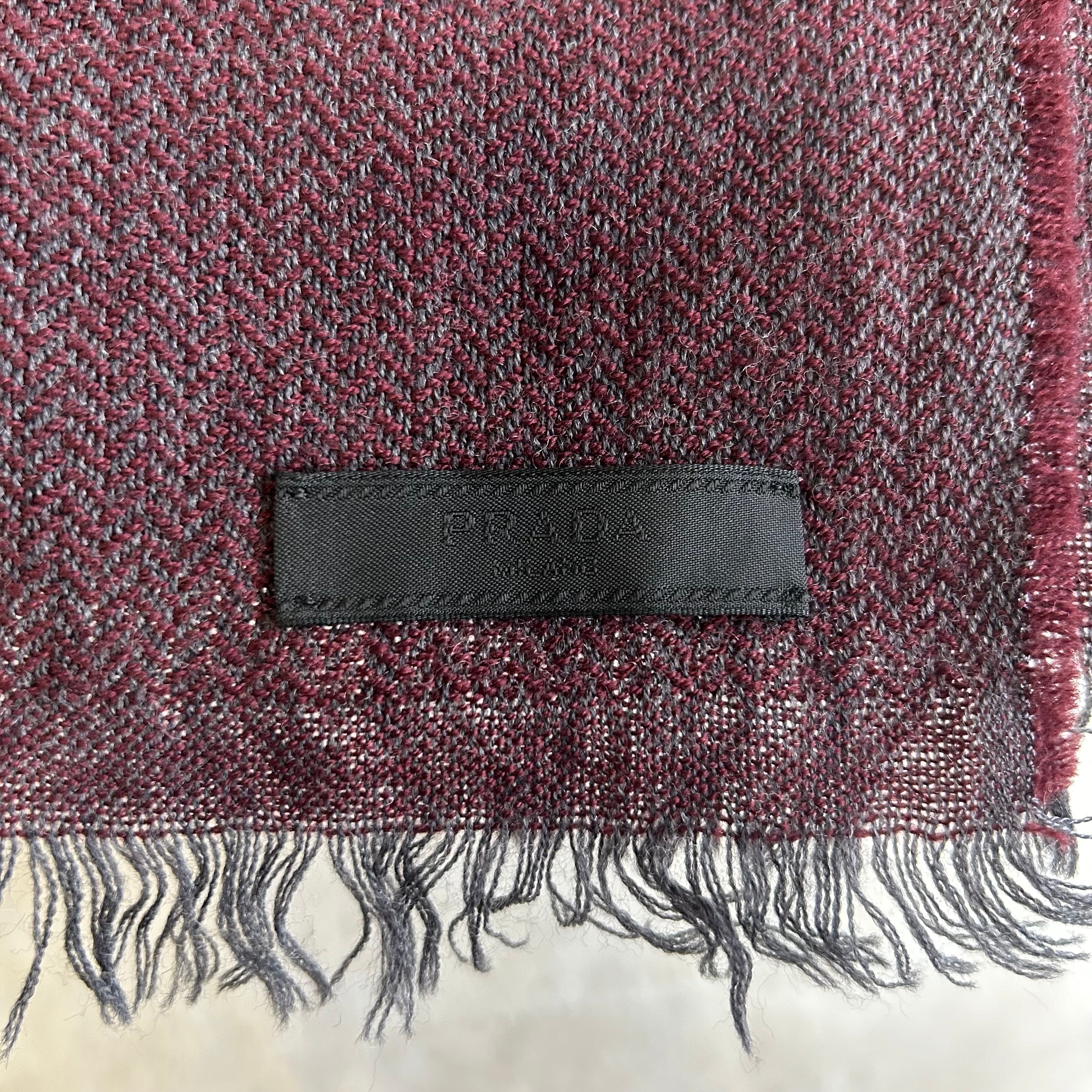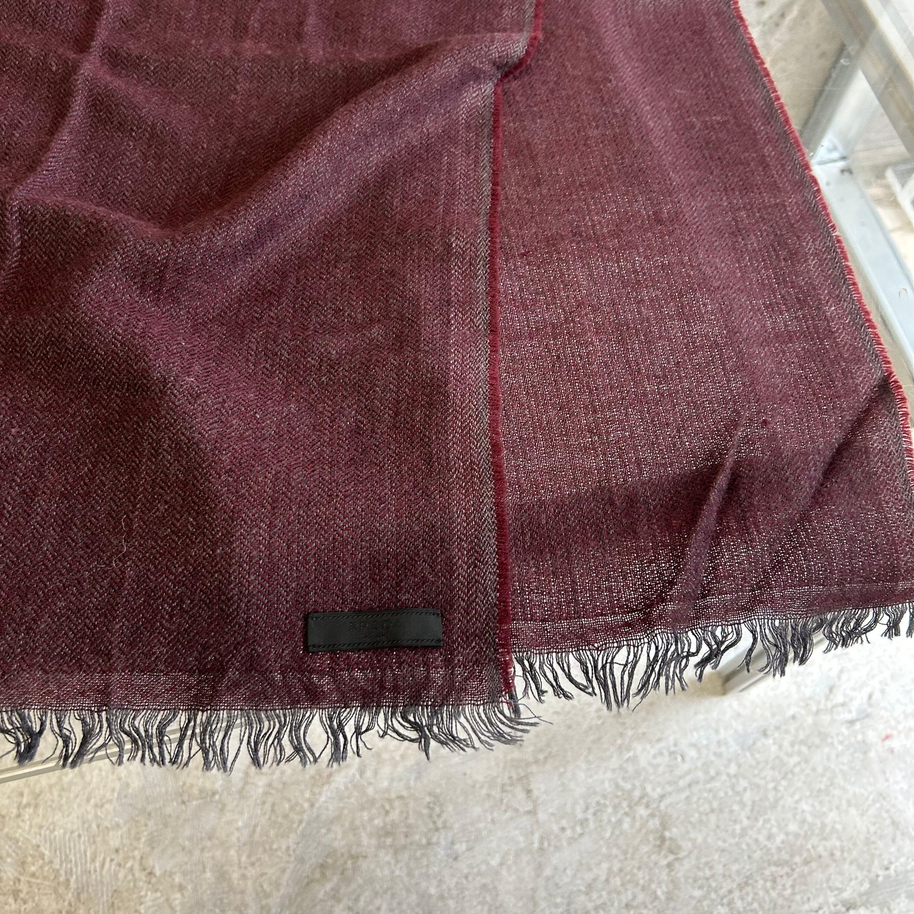 濃いグレーとワインレッドの糸で織られたマフラーです。