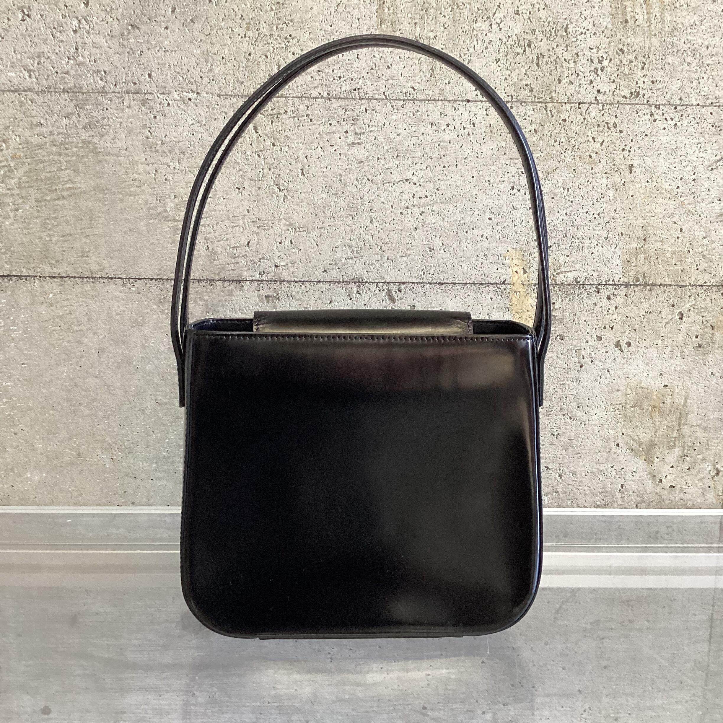モードっぽさのあるシンプルで余計なものがないレザーのハンドバッグです