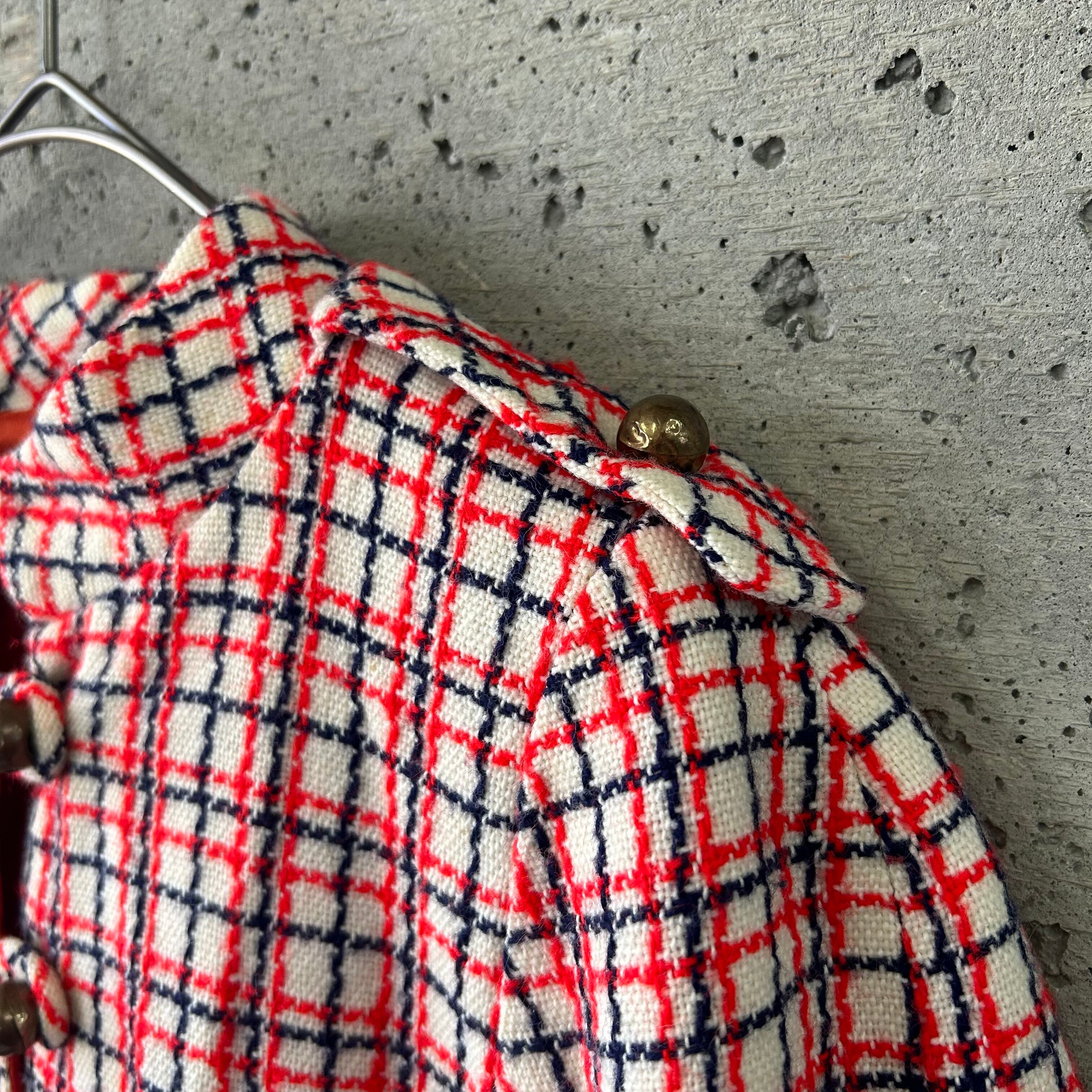 風合いのある金属のボタンと生地のビビットなラインの色合いがとてもよく合います。