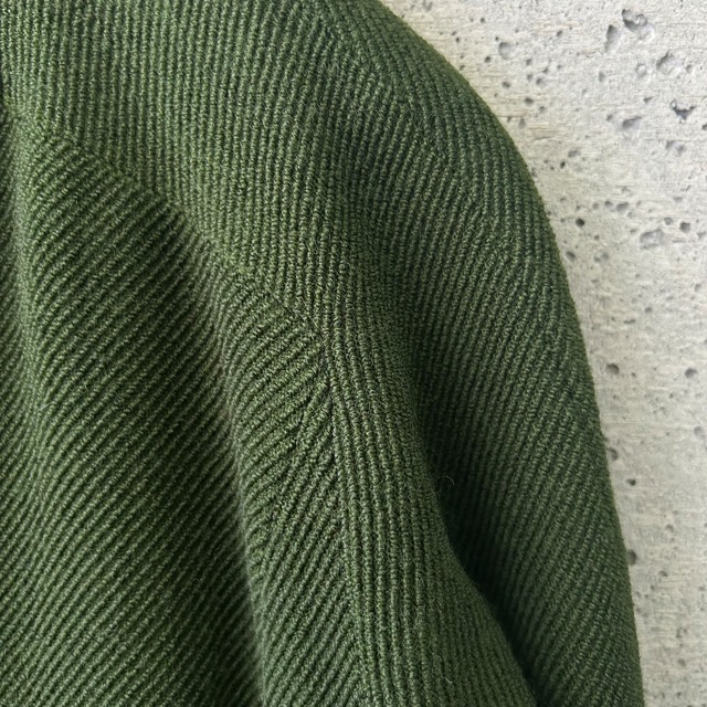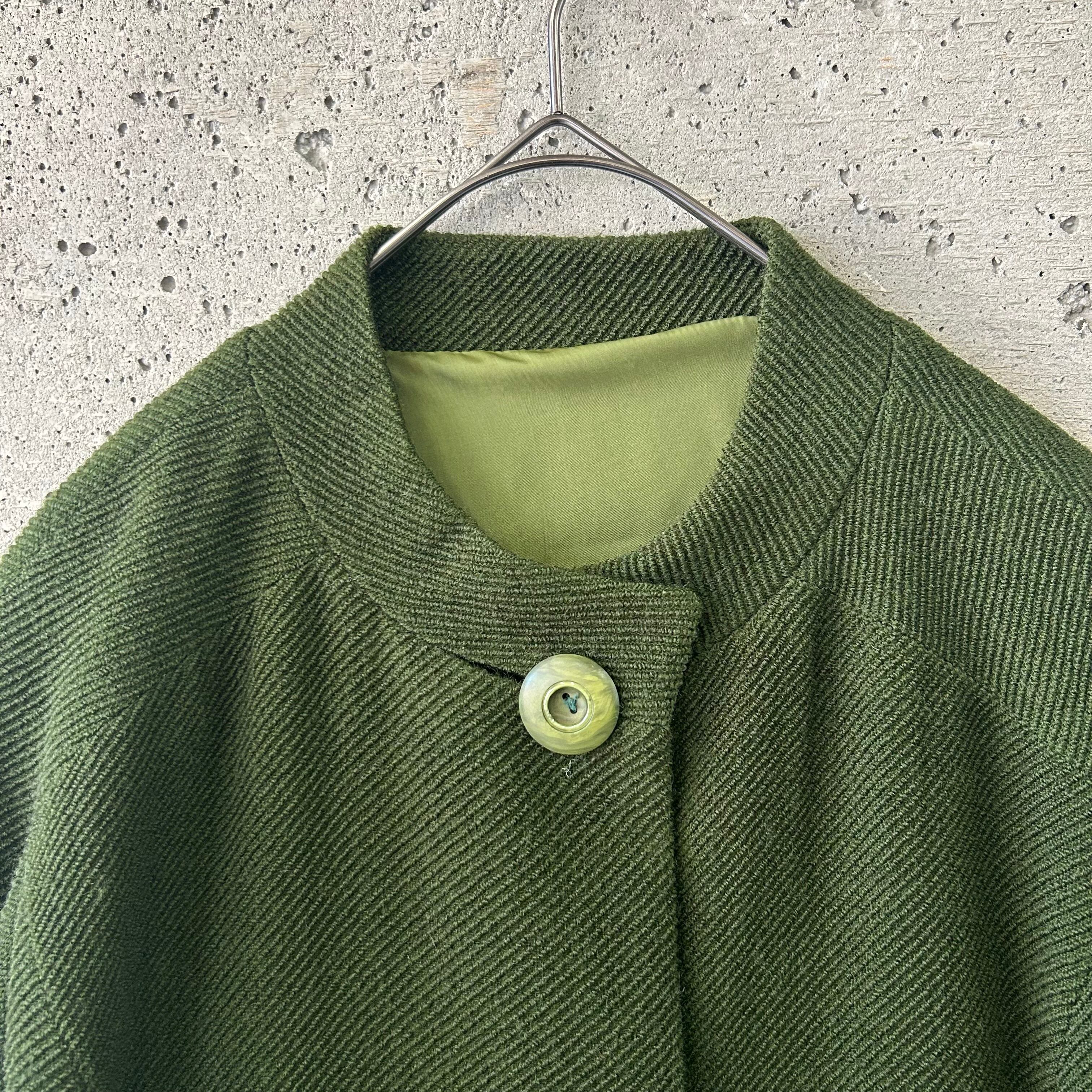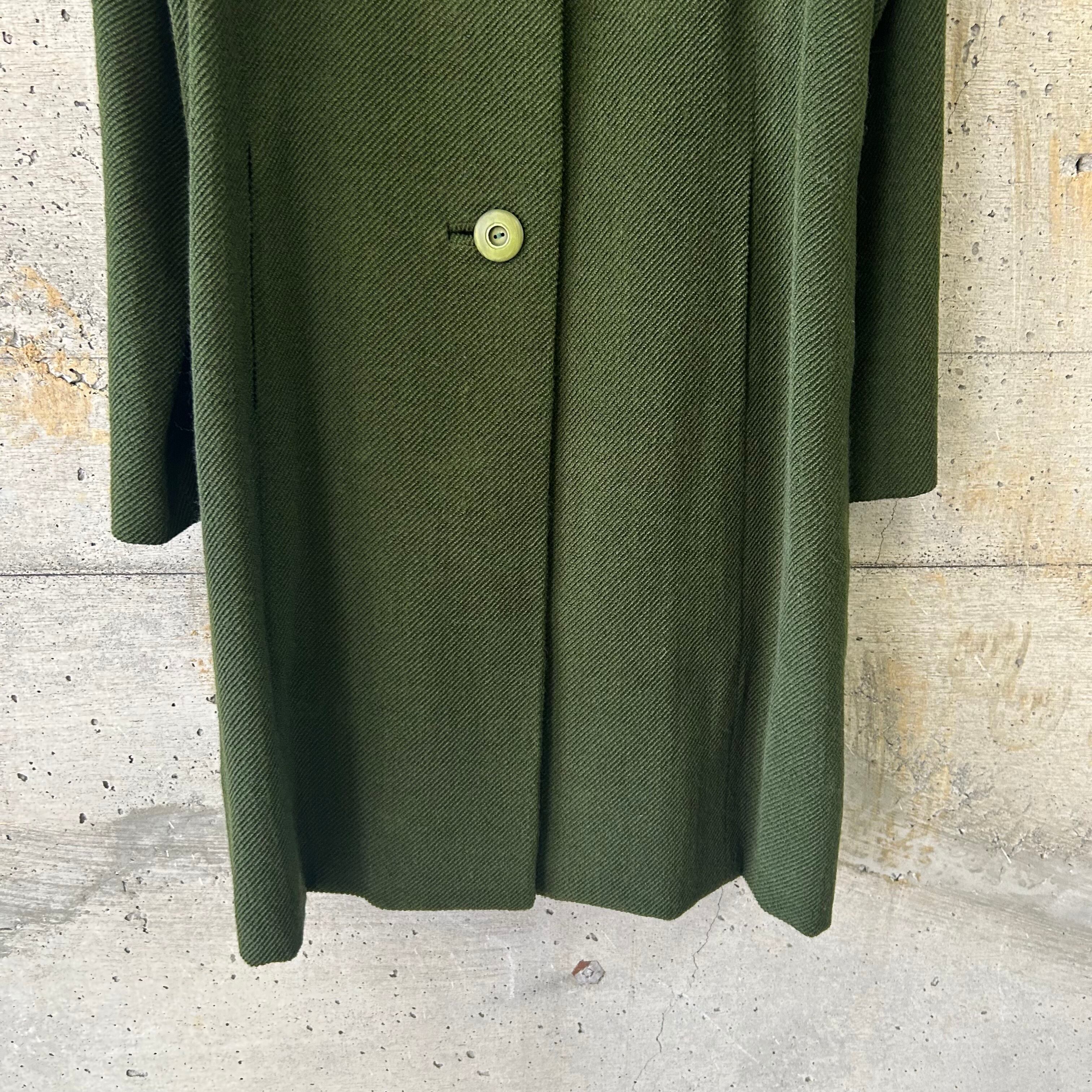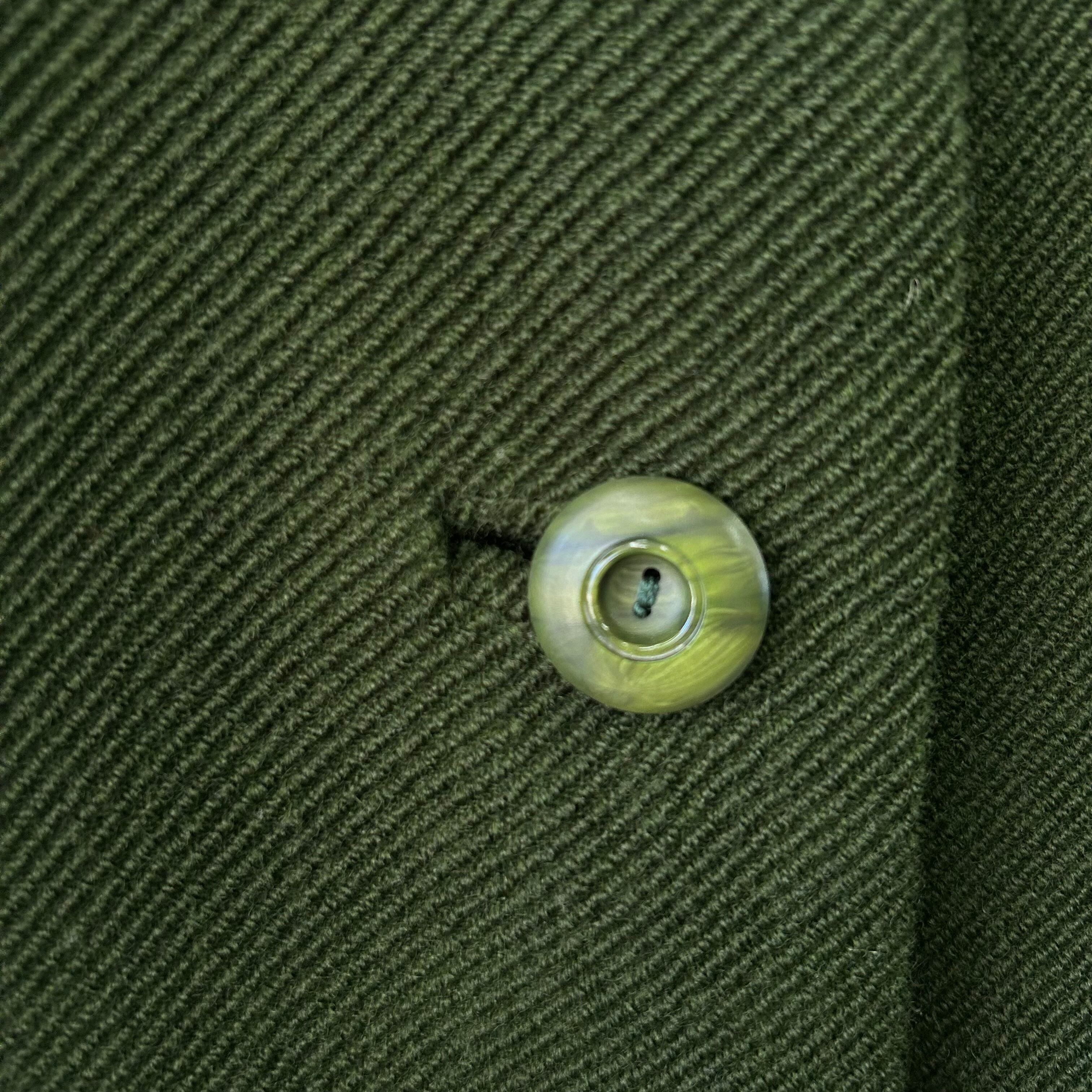 しっとりと深い緑色にウールの硬めなパイル生地がよく合ったコートです。