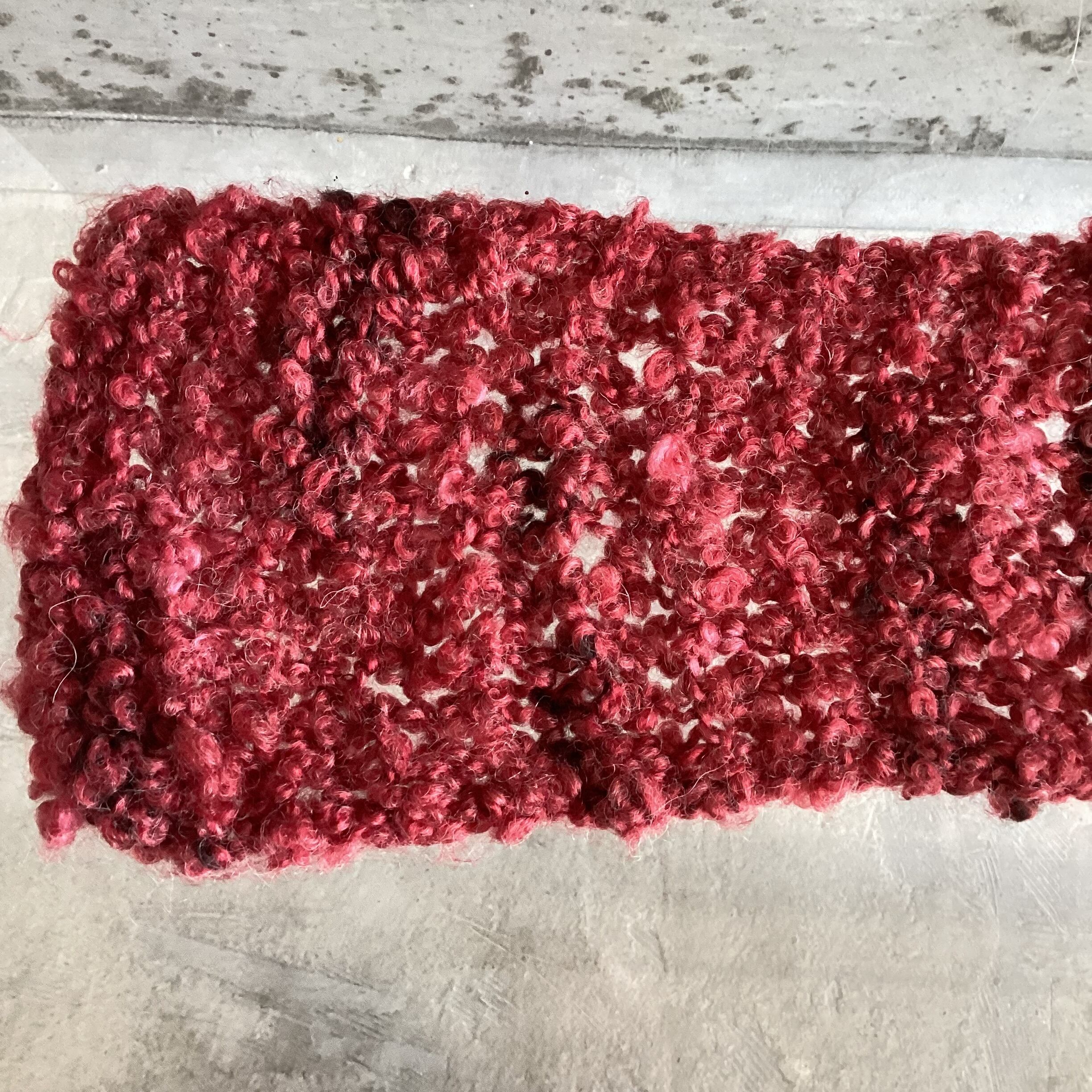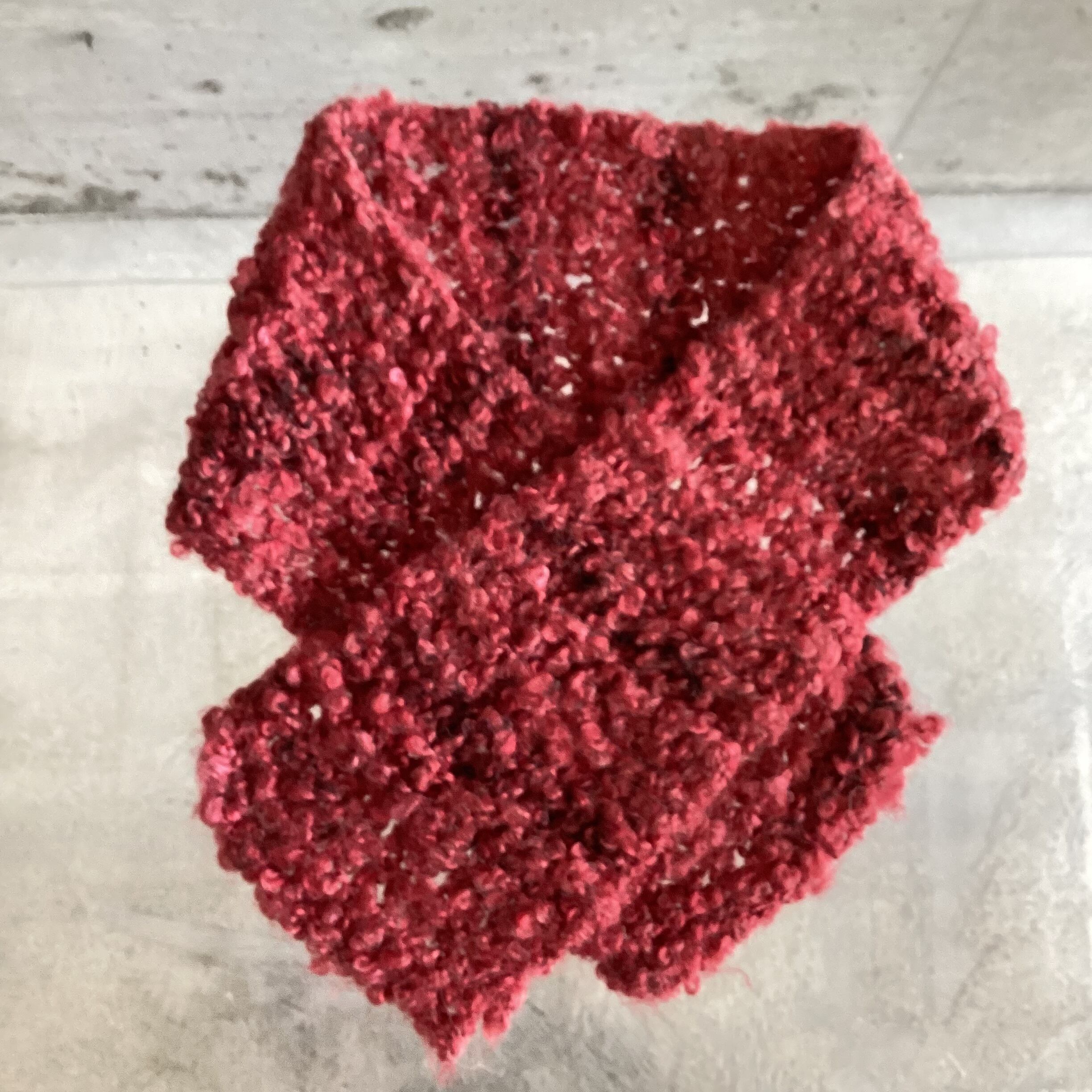 毛足が丸まった毛糸で編まれたマフラーです
