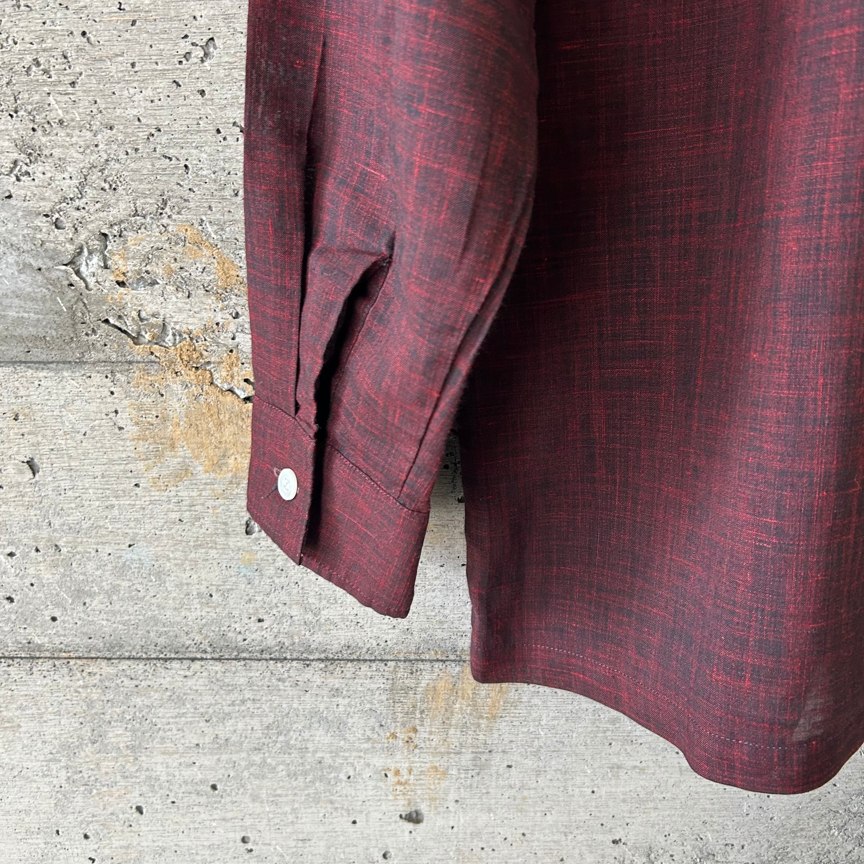 赤と黒の混ざった生地が魅力的で、ニットやジャケットの下に着るなどすると、オールシーズン使う事が出来ます。
