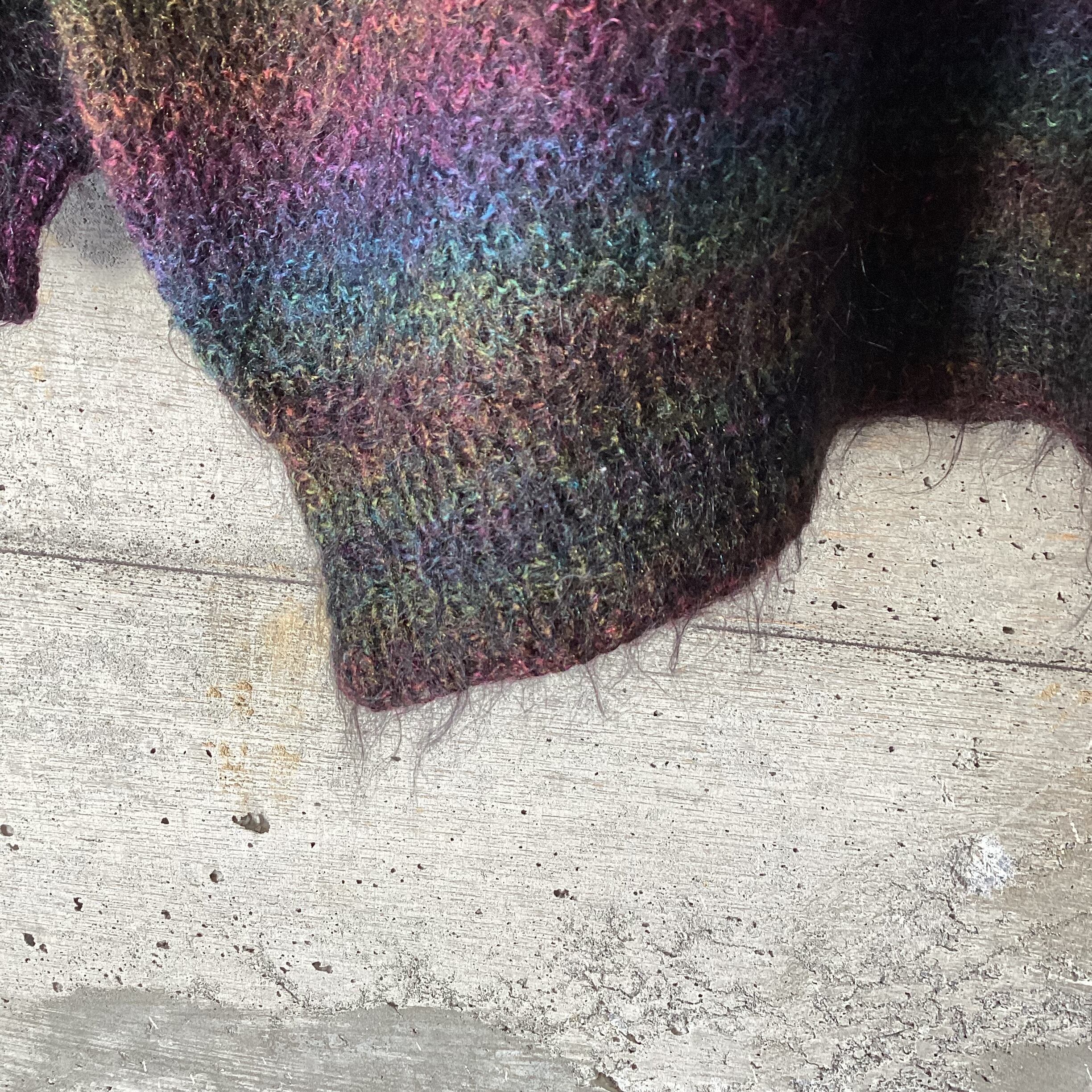 起毛感のあるモヘヤの糸で微妙な色合いのグラデーションになっているので、とても雰囲気のあるニットになっています