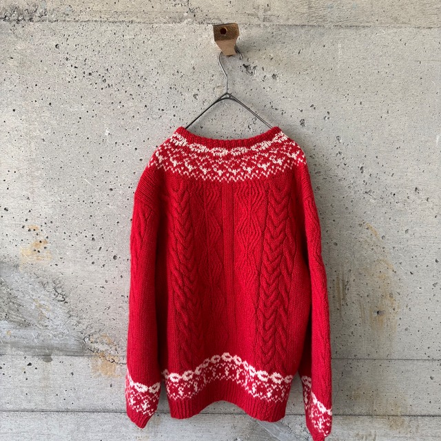 レッドのノルディック風カーディガンです。