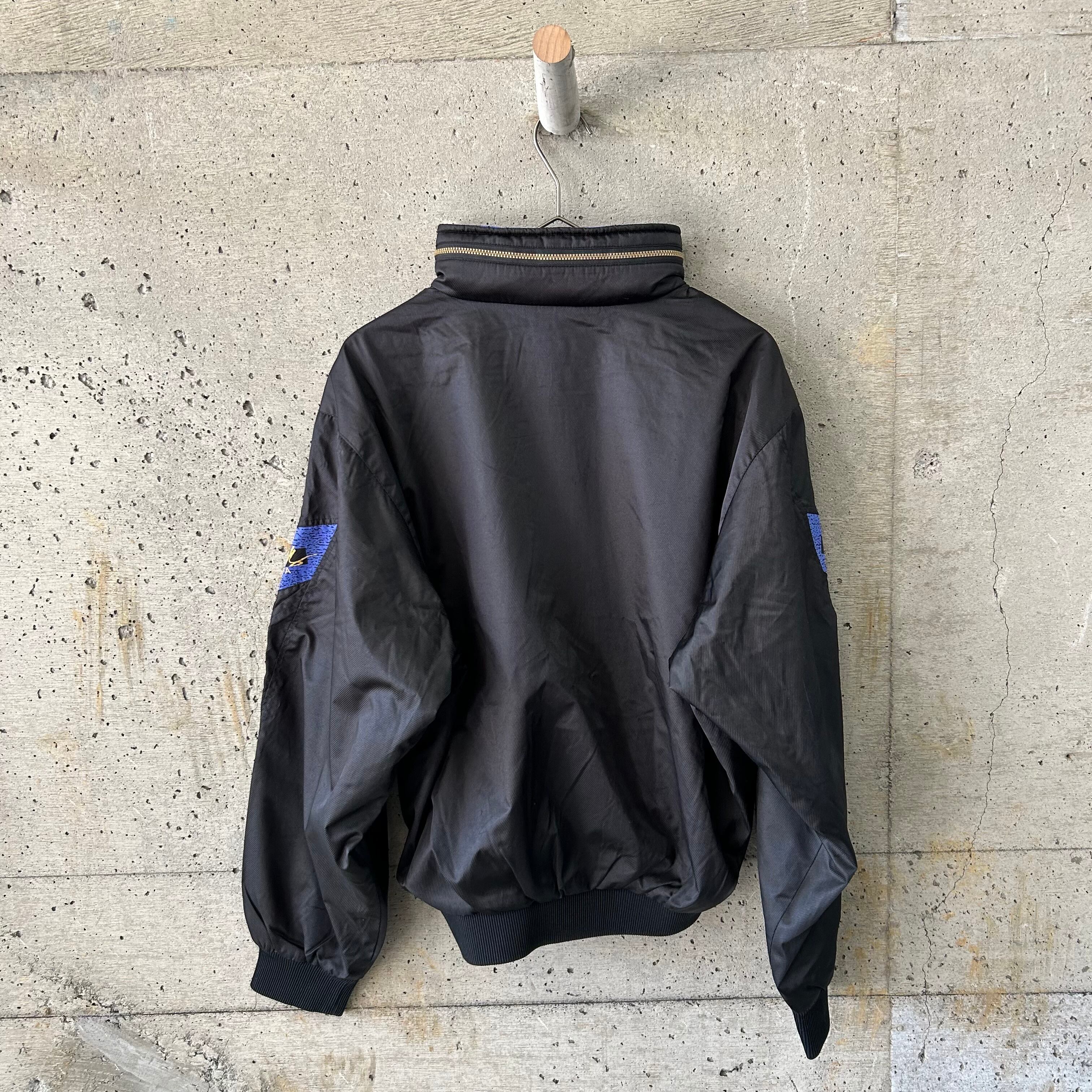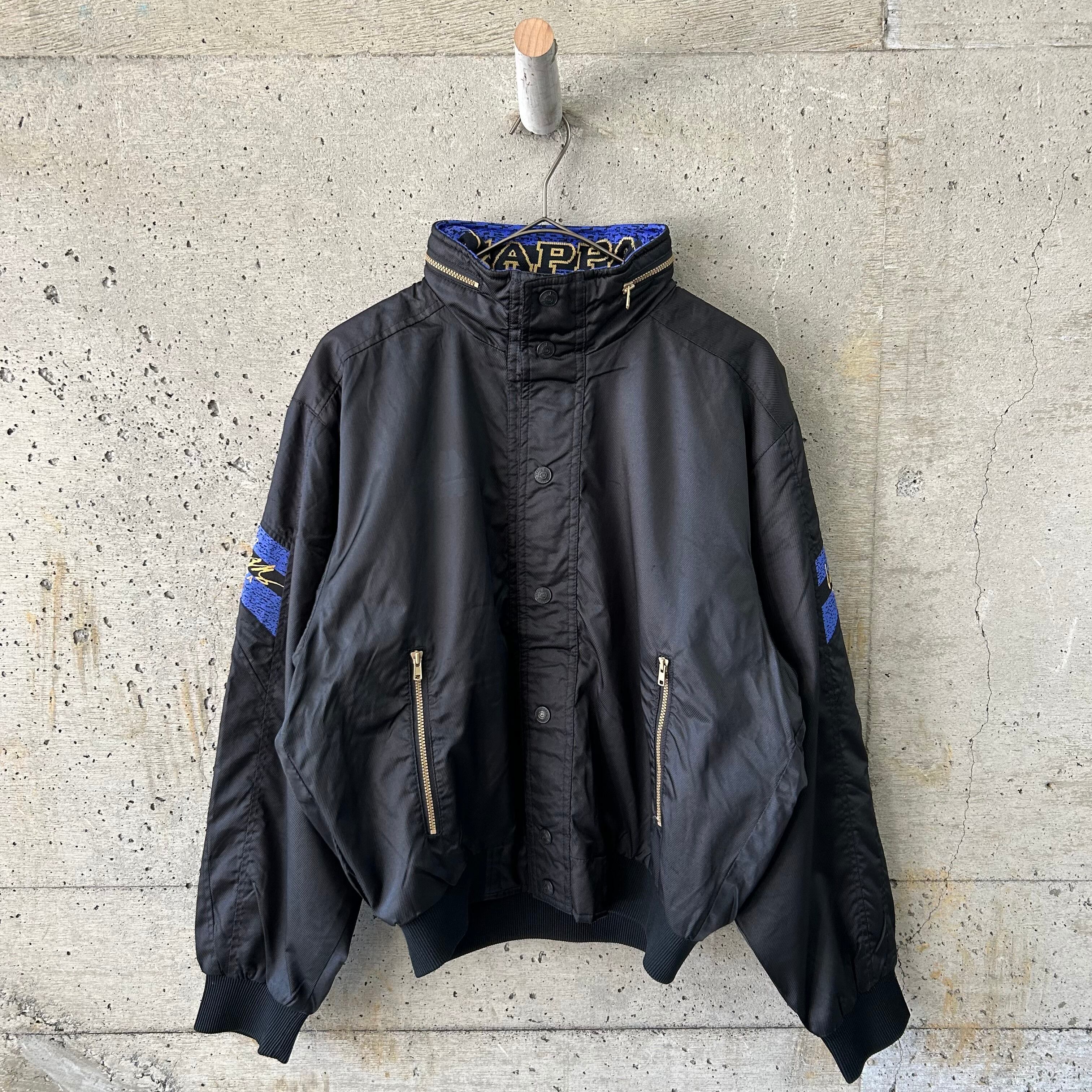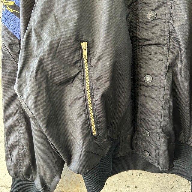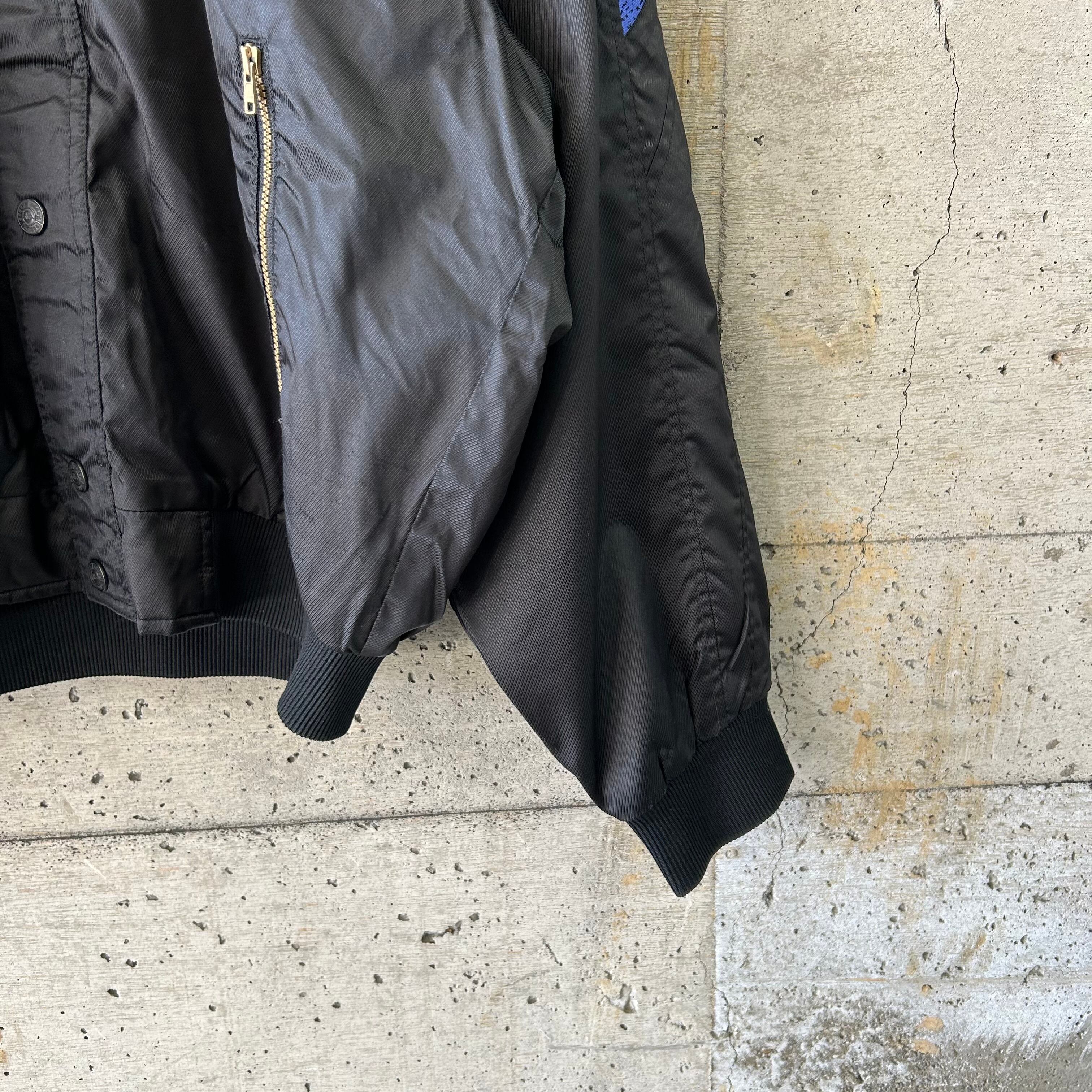 光沢のある肌触りの良い生地感が特徴的なブルゾンです。