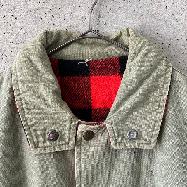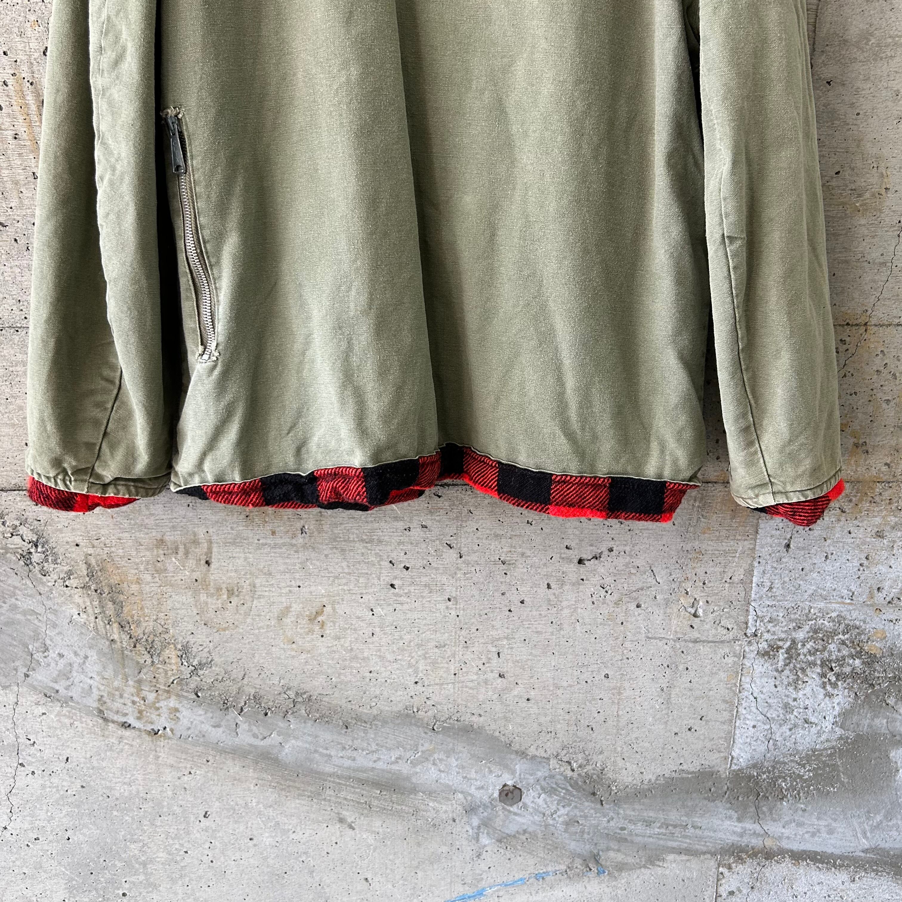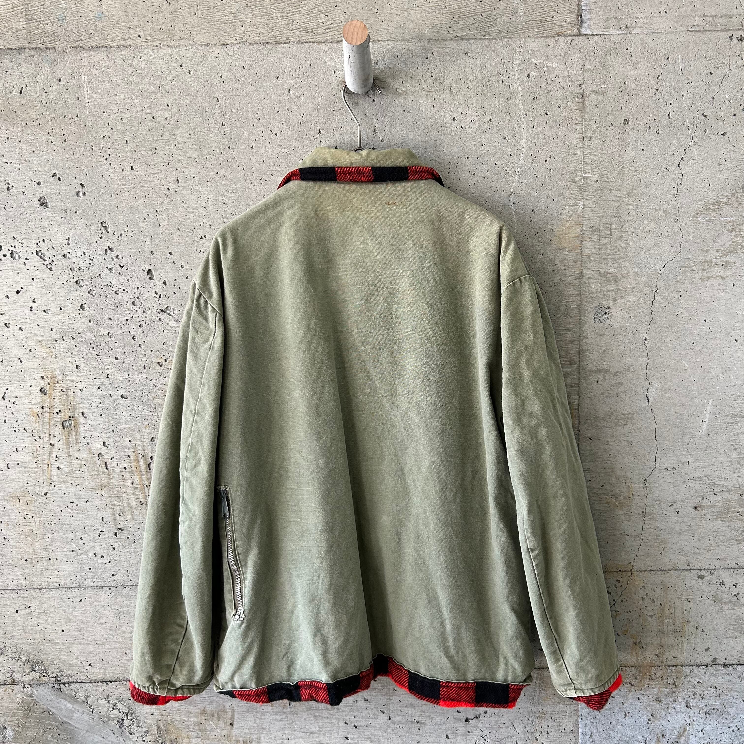 Khaki x check reversible blouson