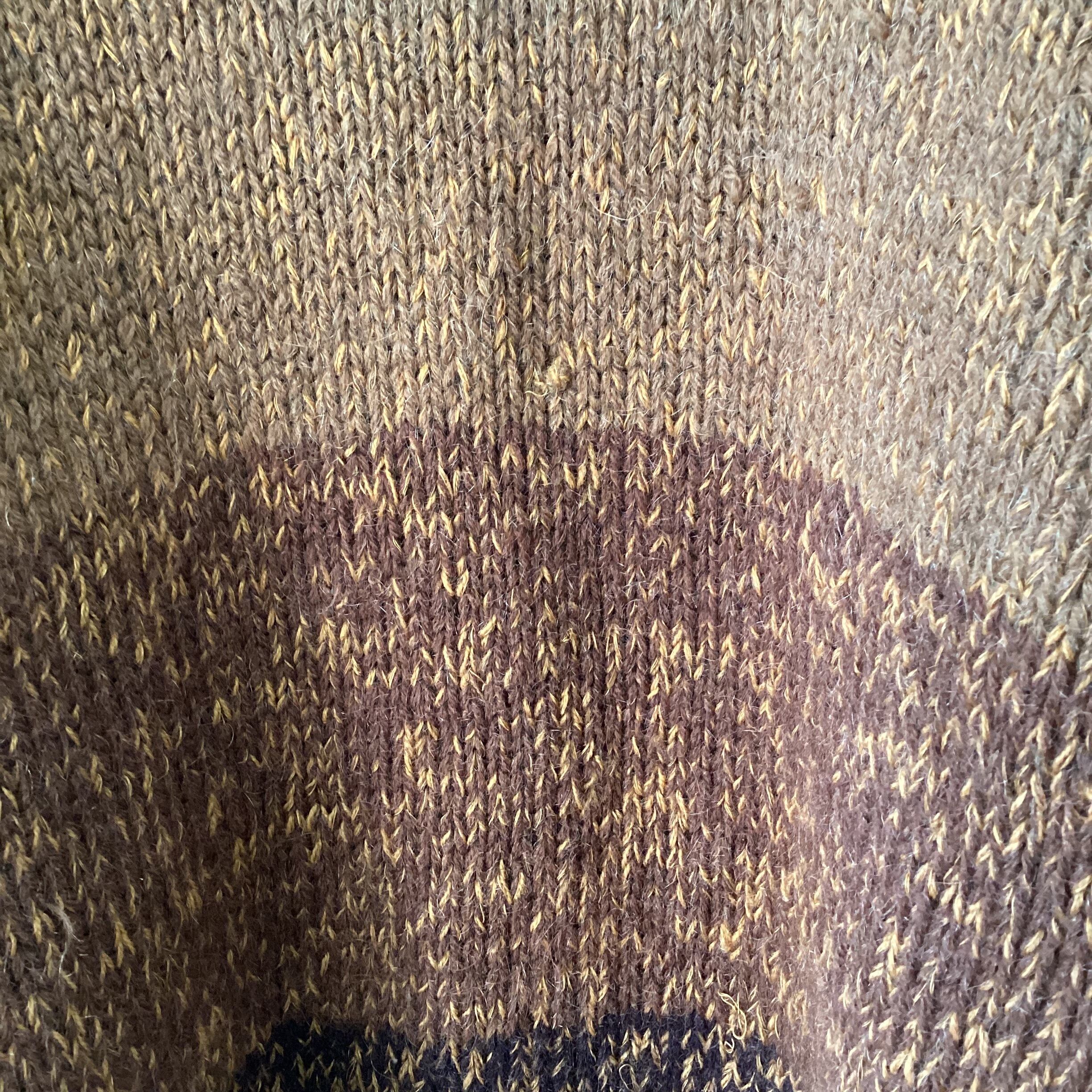所々に毛糸の繋ぎ目による網目の大きさが違う部分があります