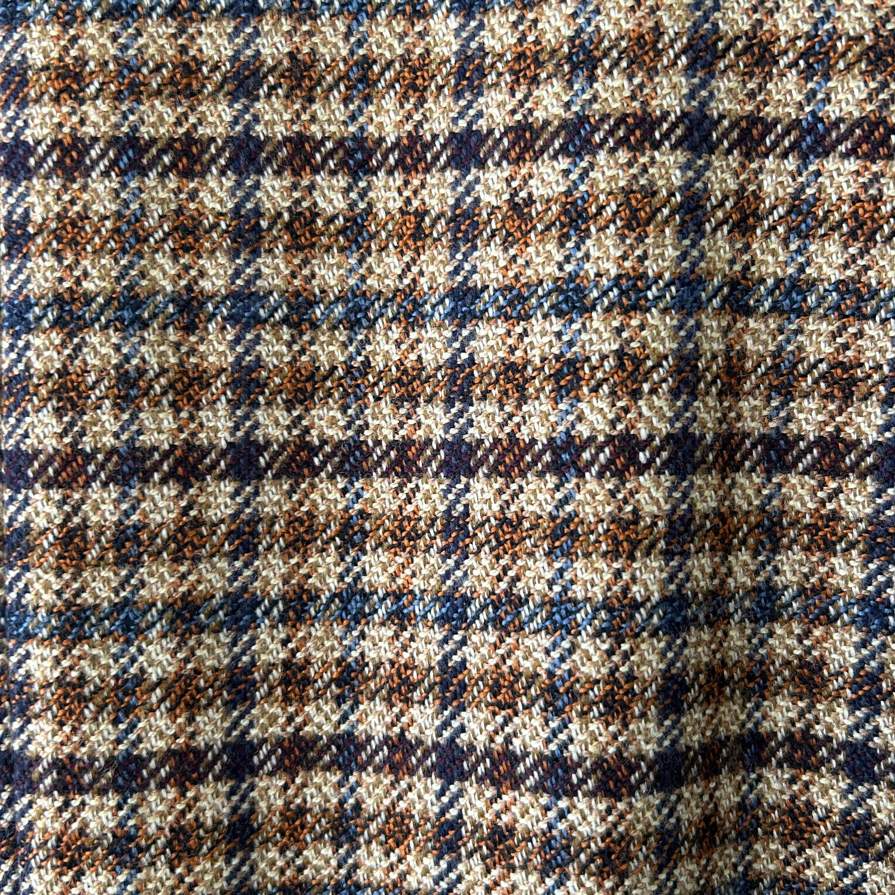 ブラウンの同系色中に淡い水色がアクセントになっているチェックの柄がとても素敵です。