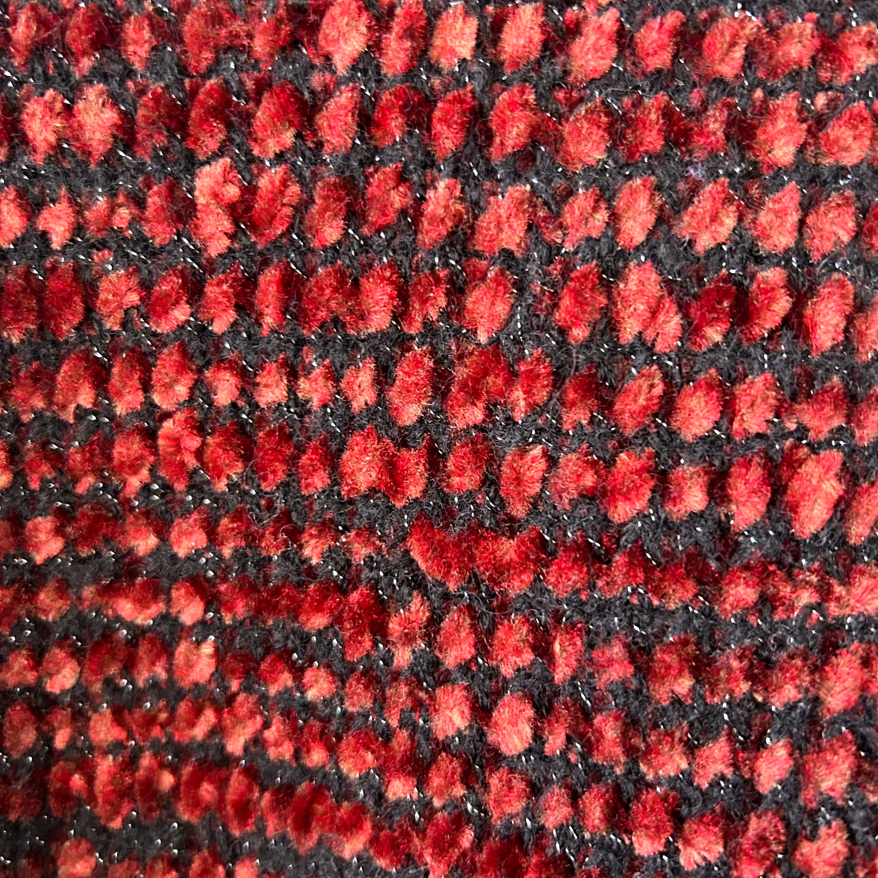 ブラックがベースになっていますが、温かみのあるブラウンレッドの糸が黒の綺麗さを緩和して、気軽に着やすい暖かい色味になっています。