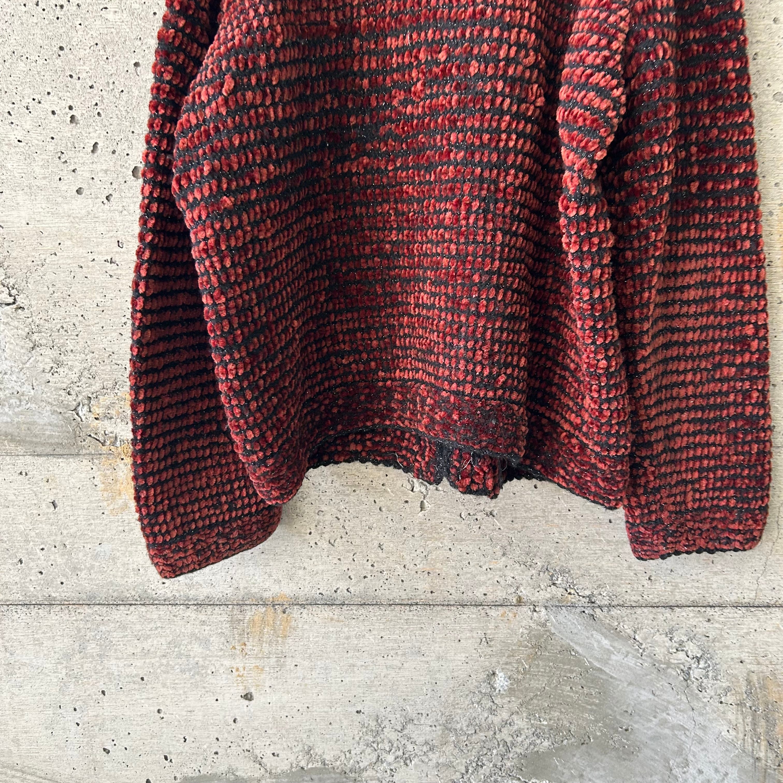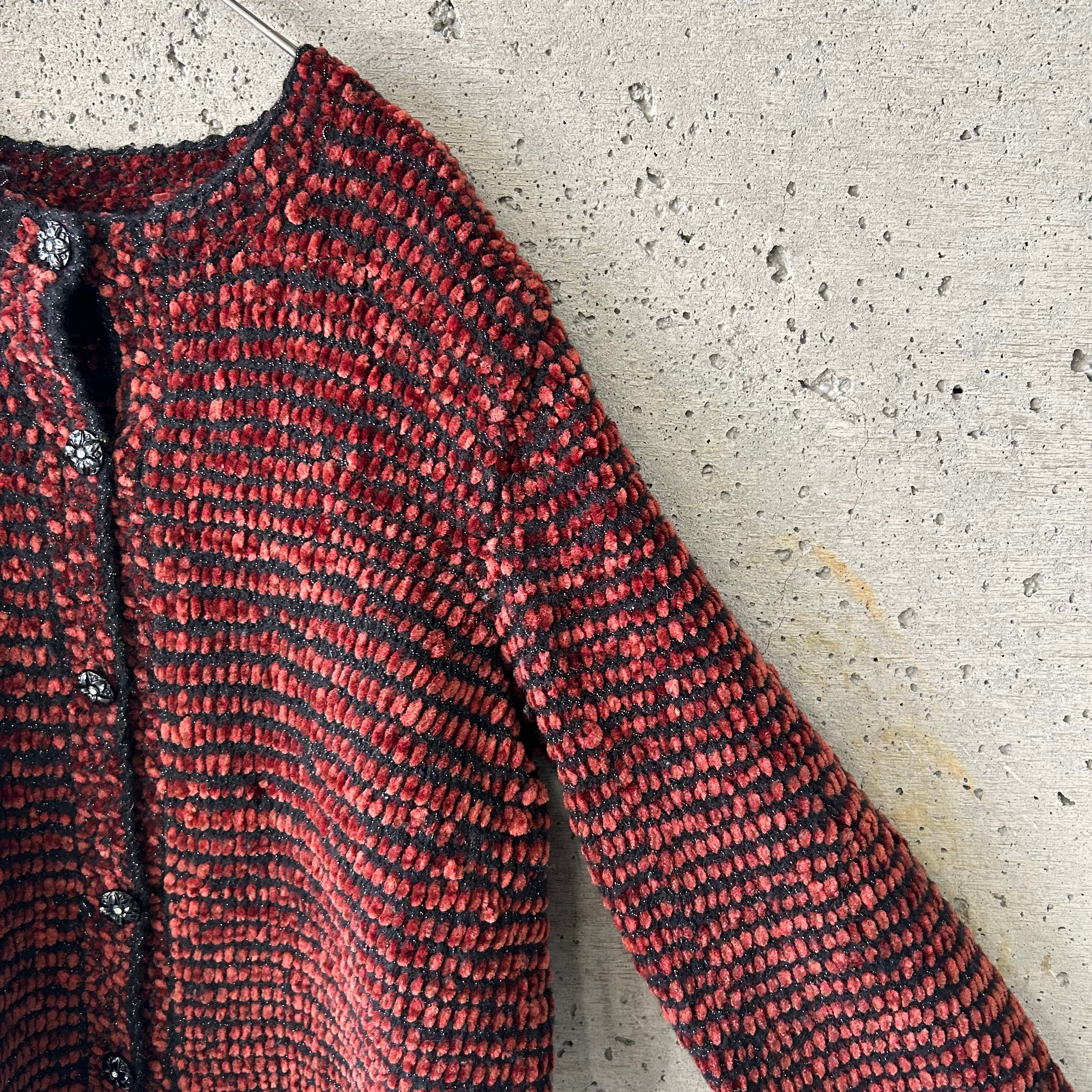モールのような毛質の糸で編まれたニットカーディガンです。