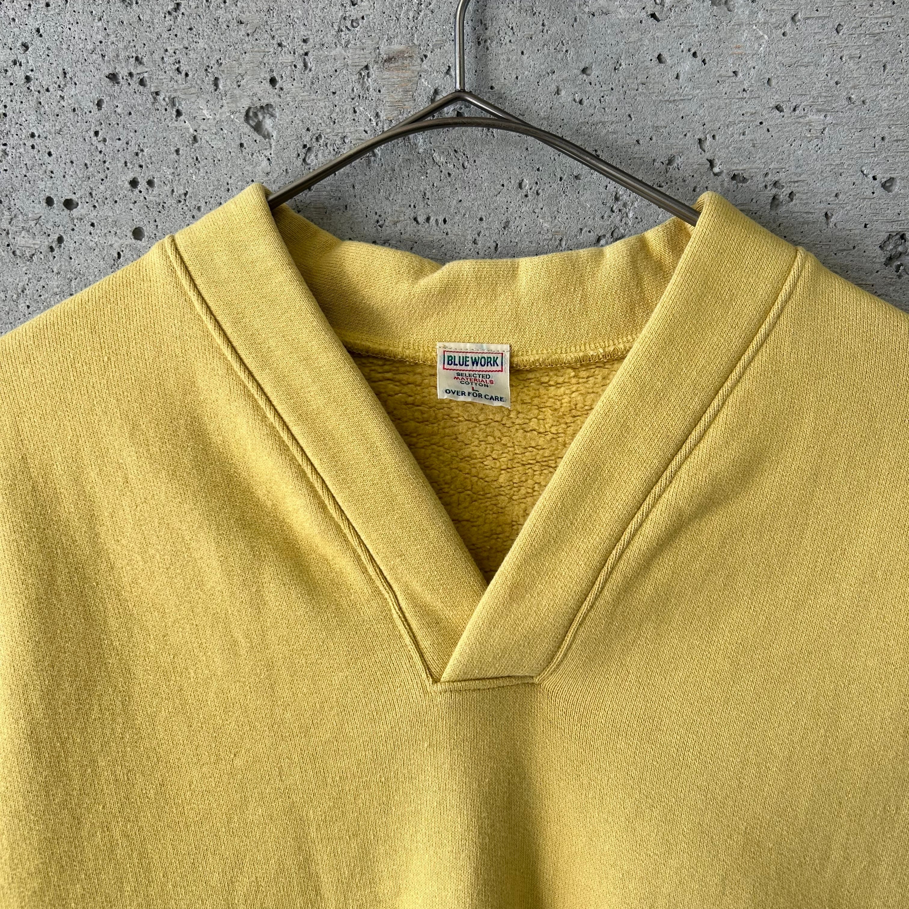 スウェットには珍しいVネックで、中に重ね着する色や柄でとても雰囲気が変わります。
