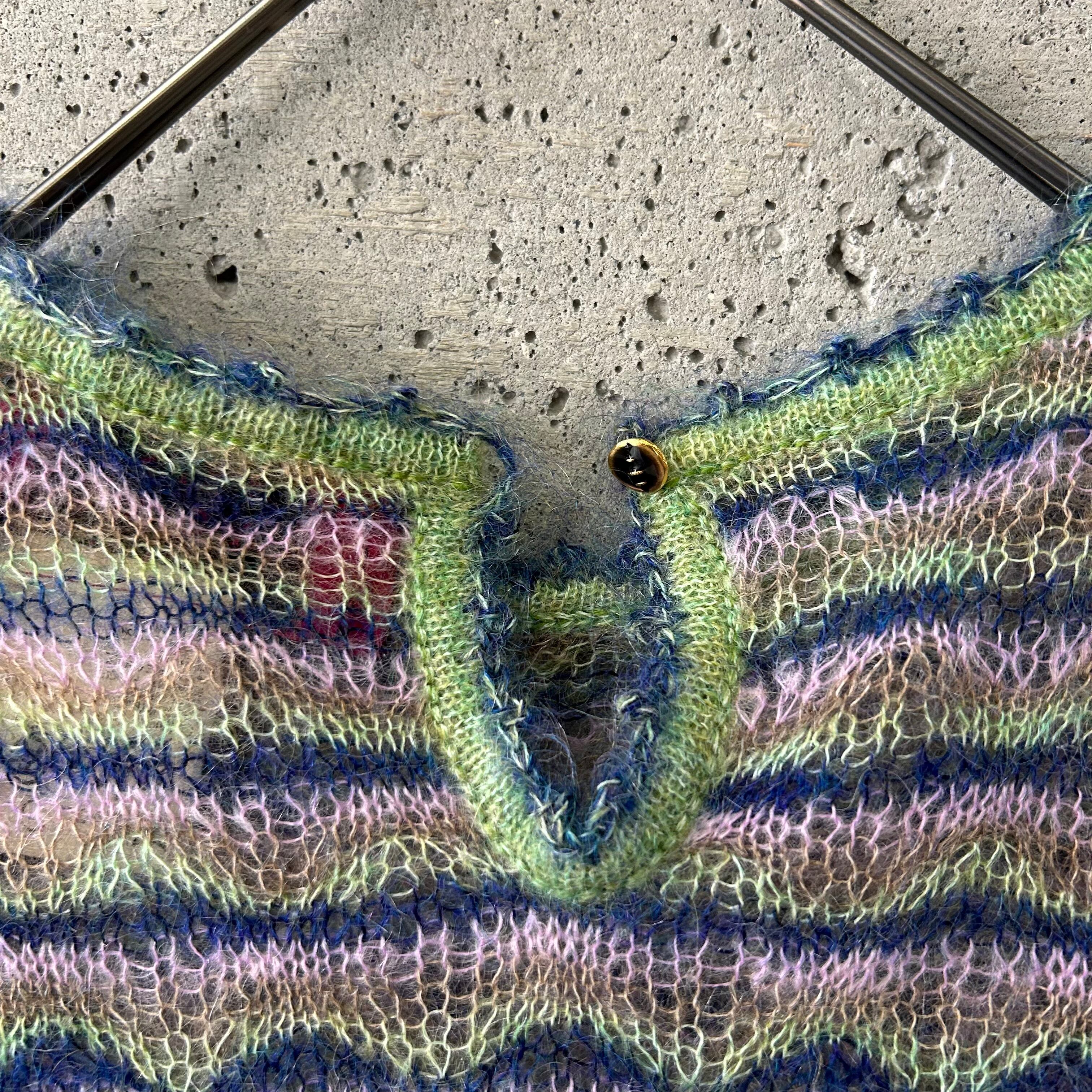 ゆるく編まれた部分はモヘア独自の淡い雰囲気を最大限引き出します。