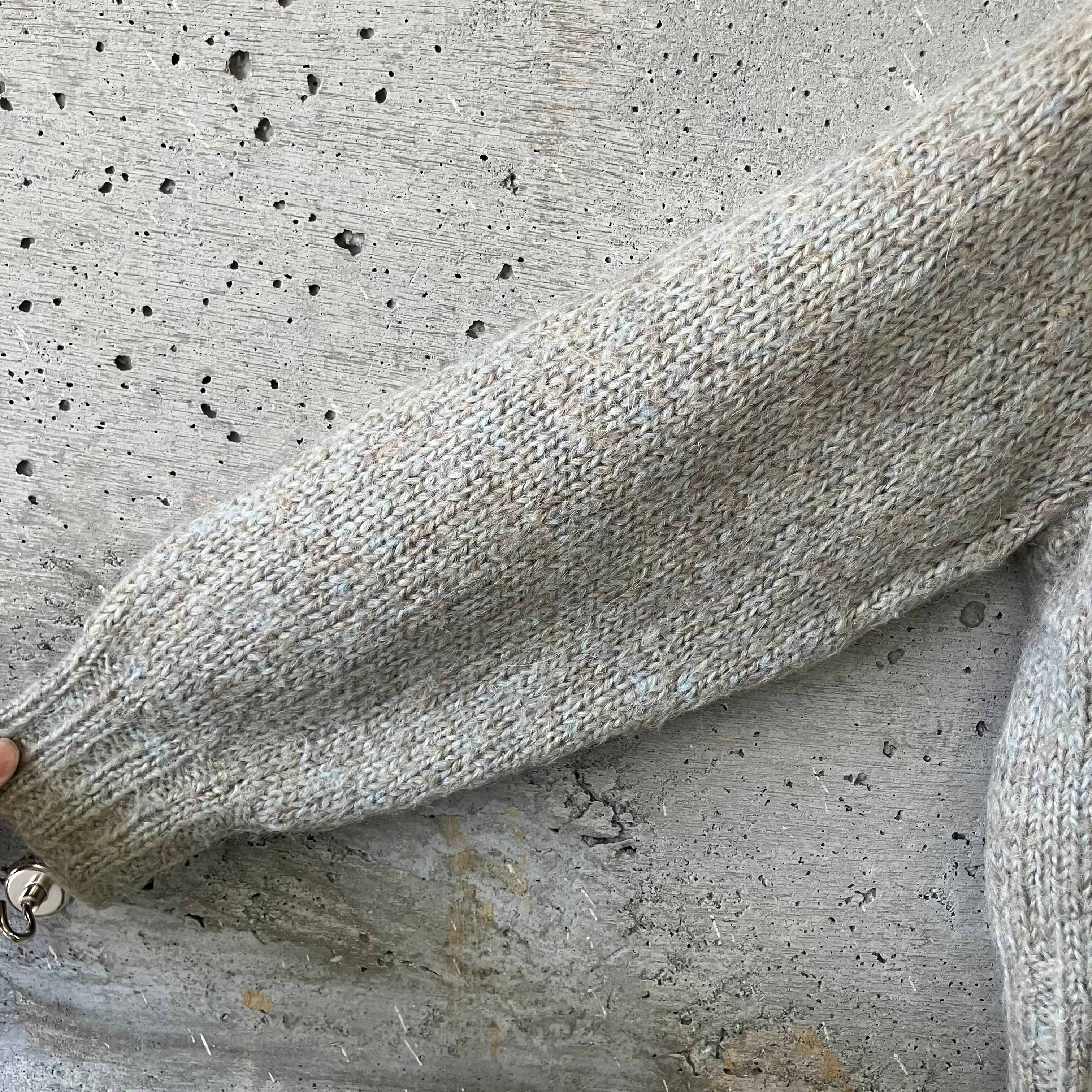 ニットの糸もよく見ると何色か異なる色が使われておりこだわりを感じることのできる1着です。