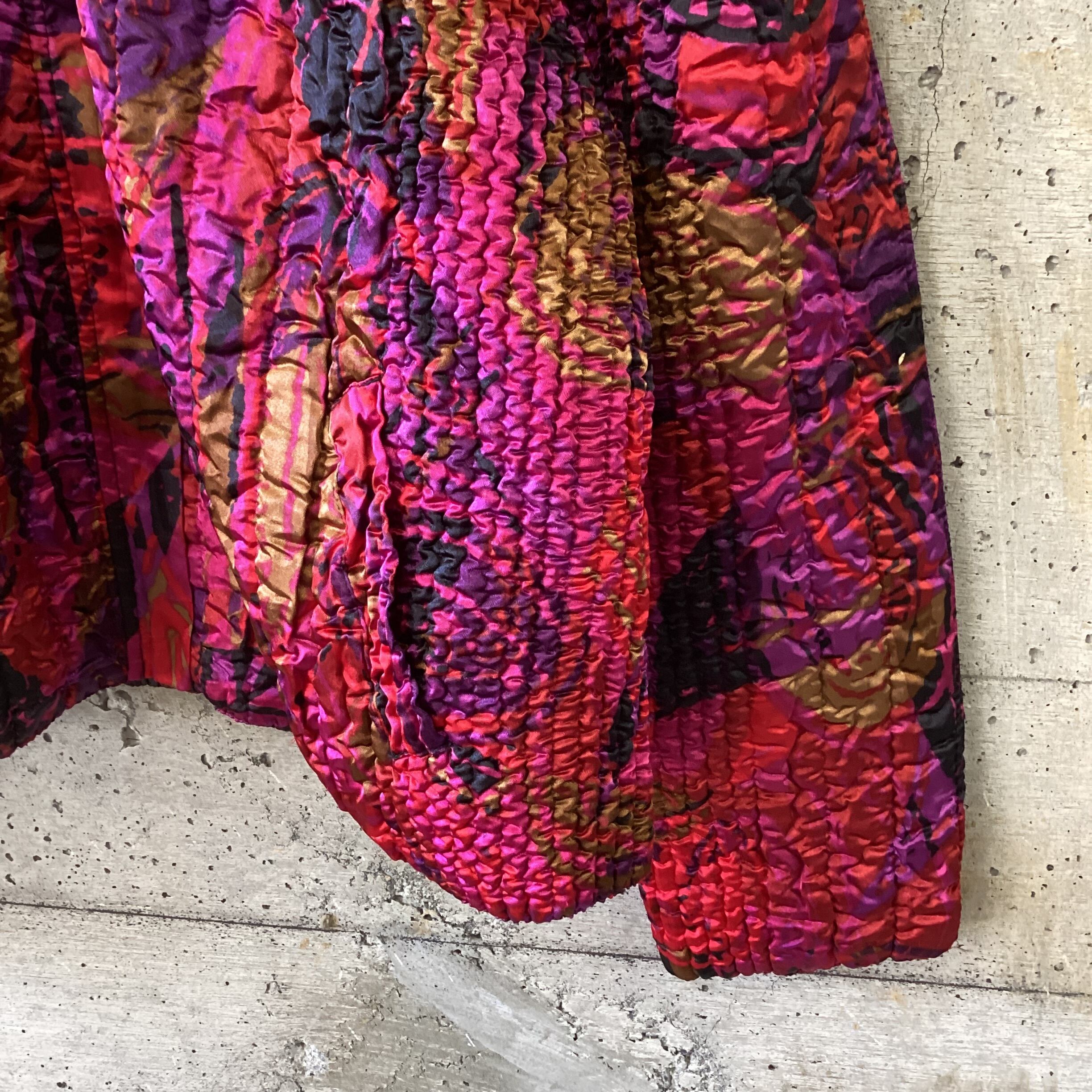 直線に何本かランニングステッチを入れたようなシワ感で規則性があり、ジップを隠すデザインにも上品さを感じます。