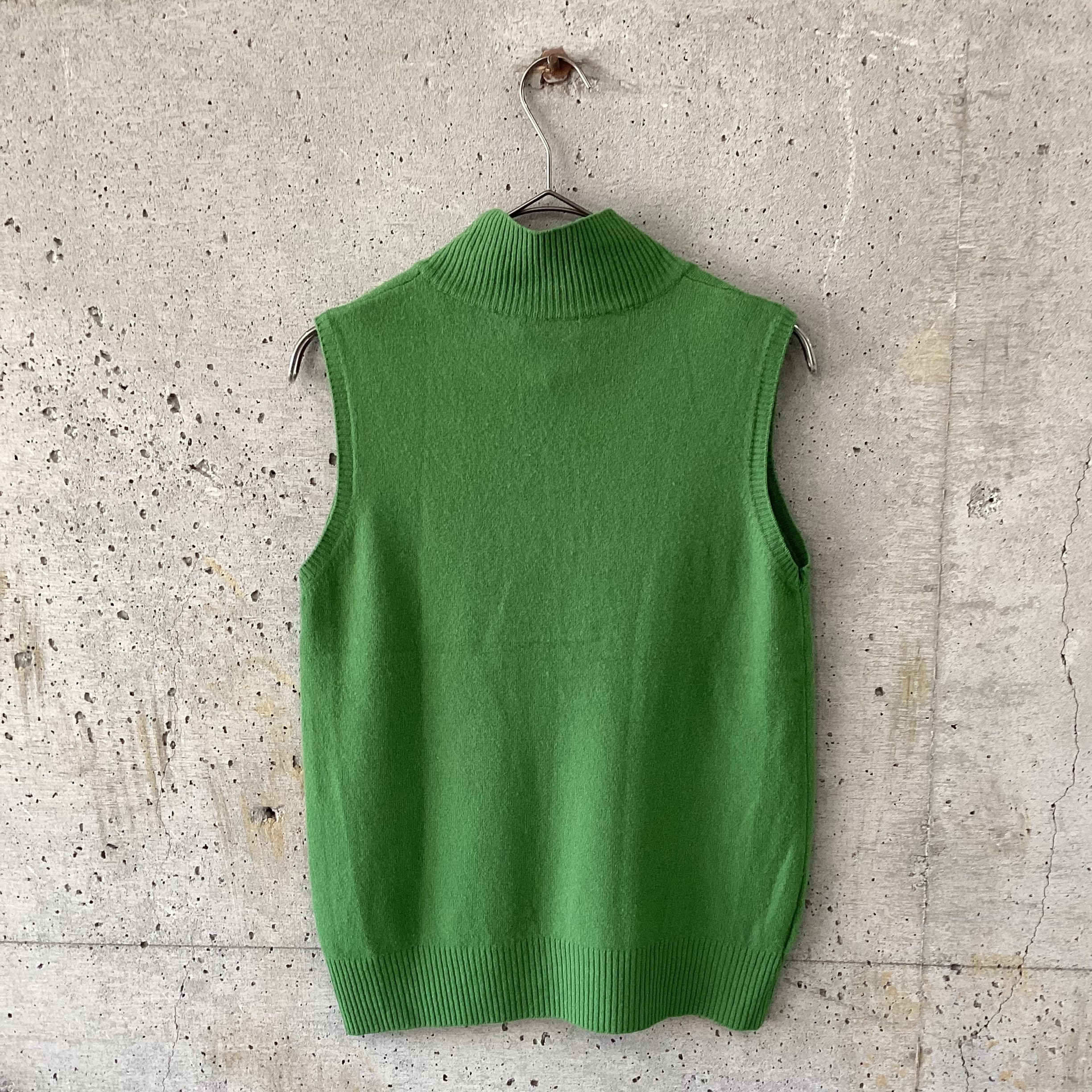 色も綺麗な緑で差し色にぴったりのニットベストです