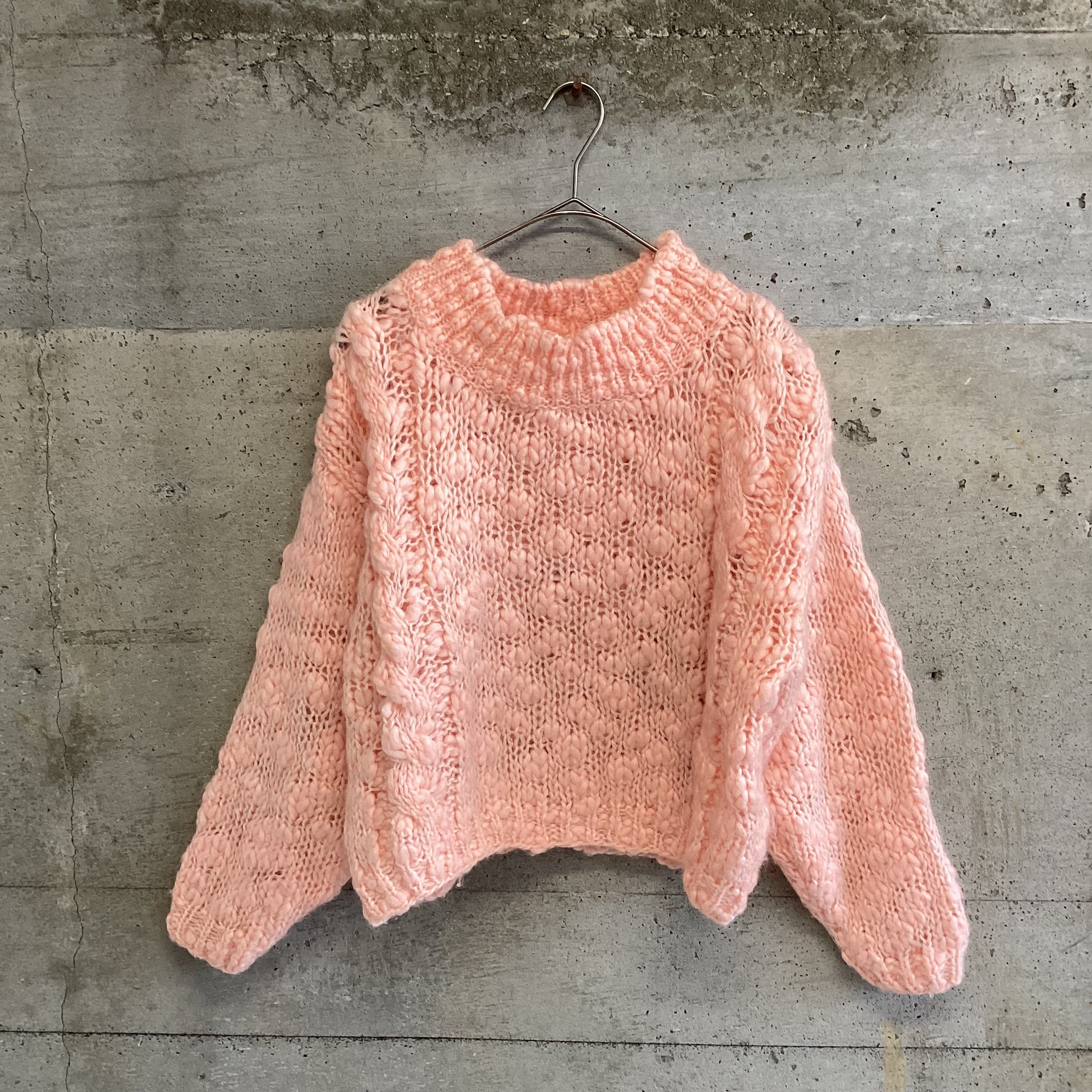 細い毛糸と太い毛糸が入り混じった毛糸なのでポコポコ強弱のついたニットになっています