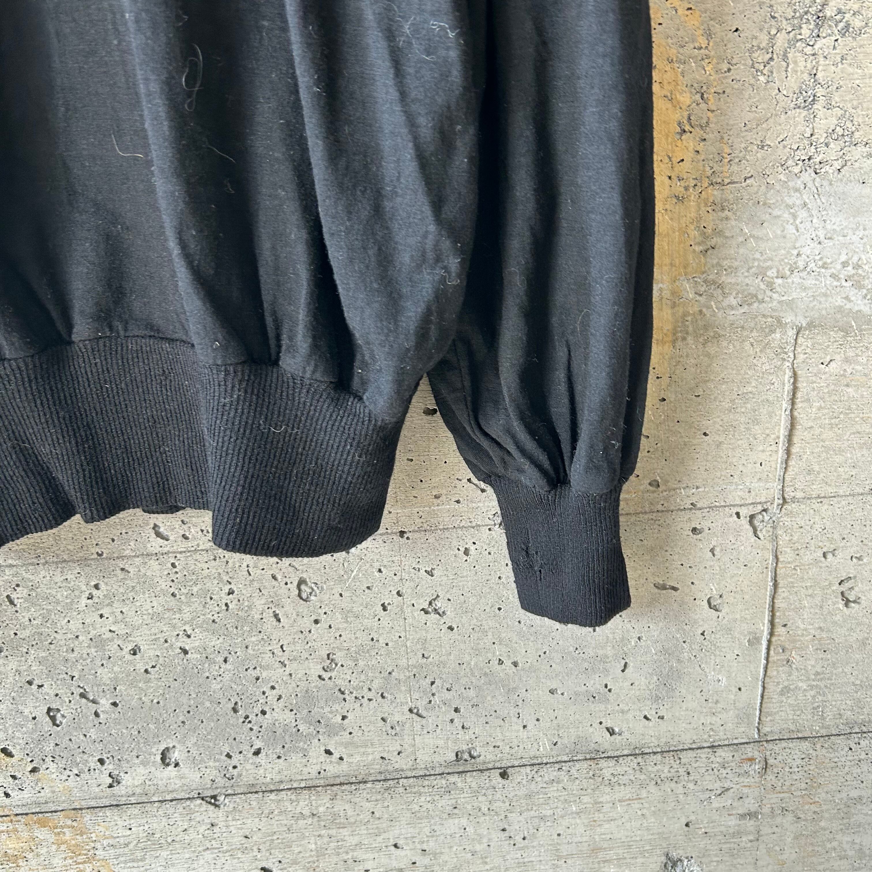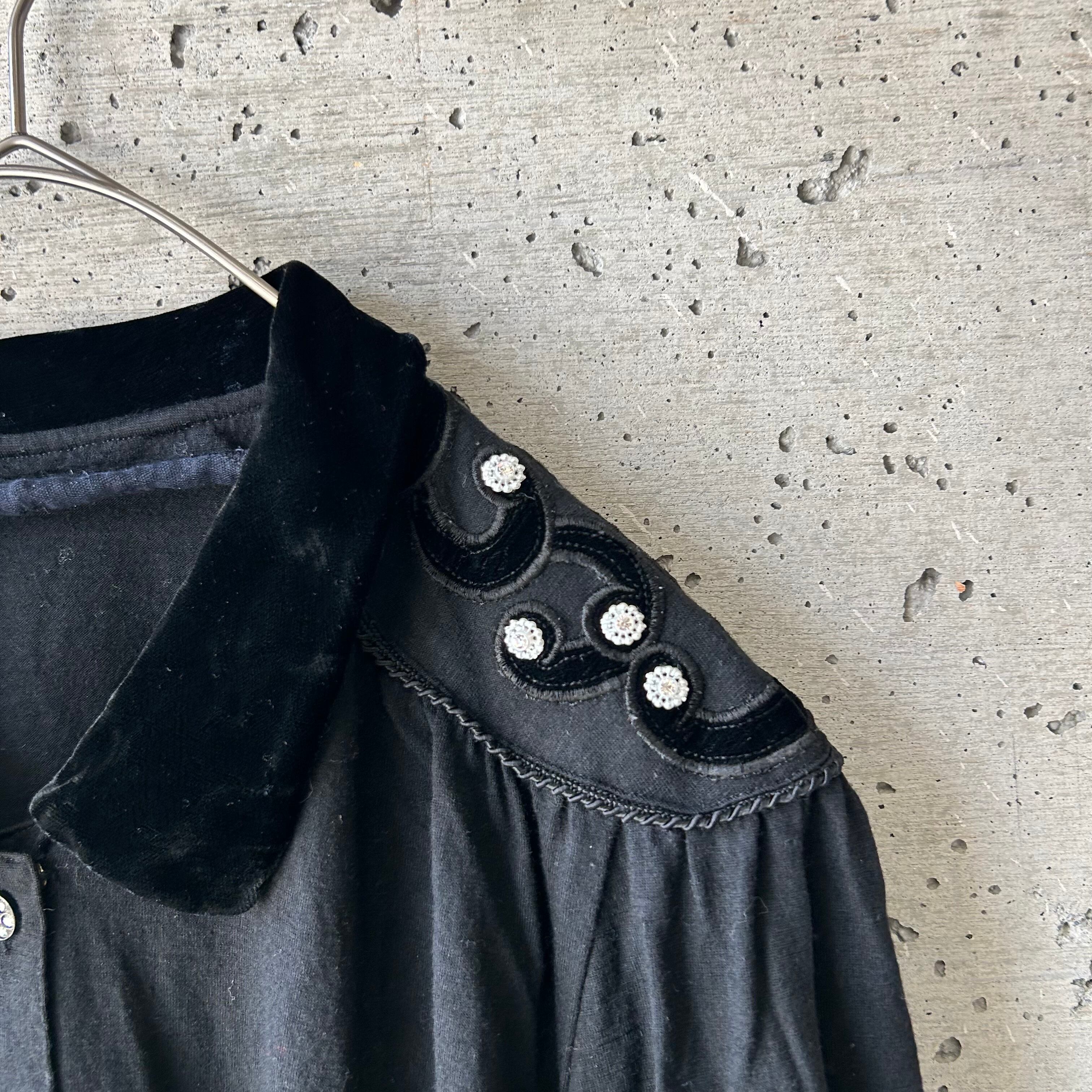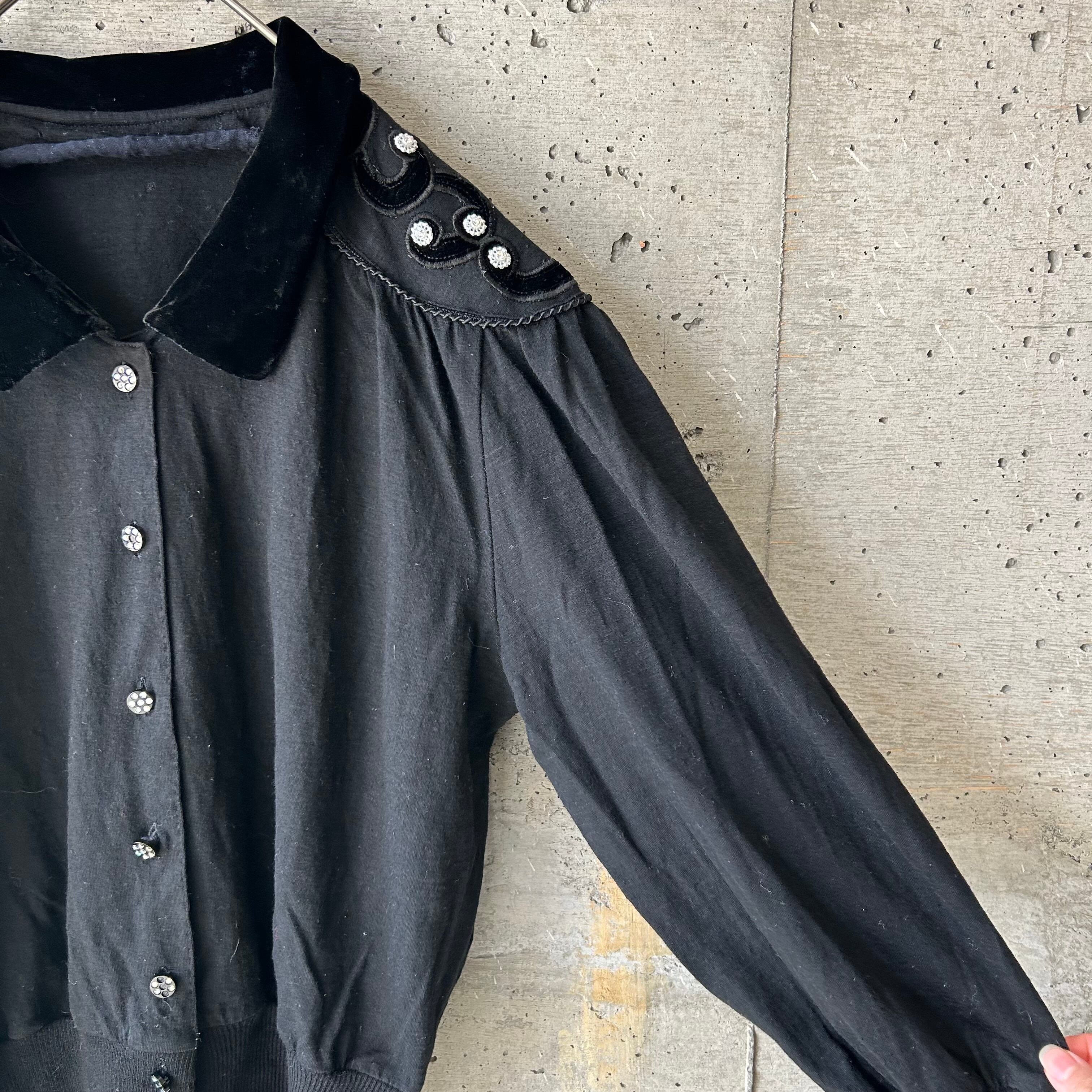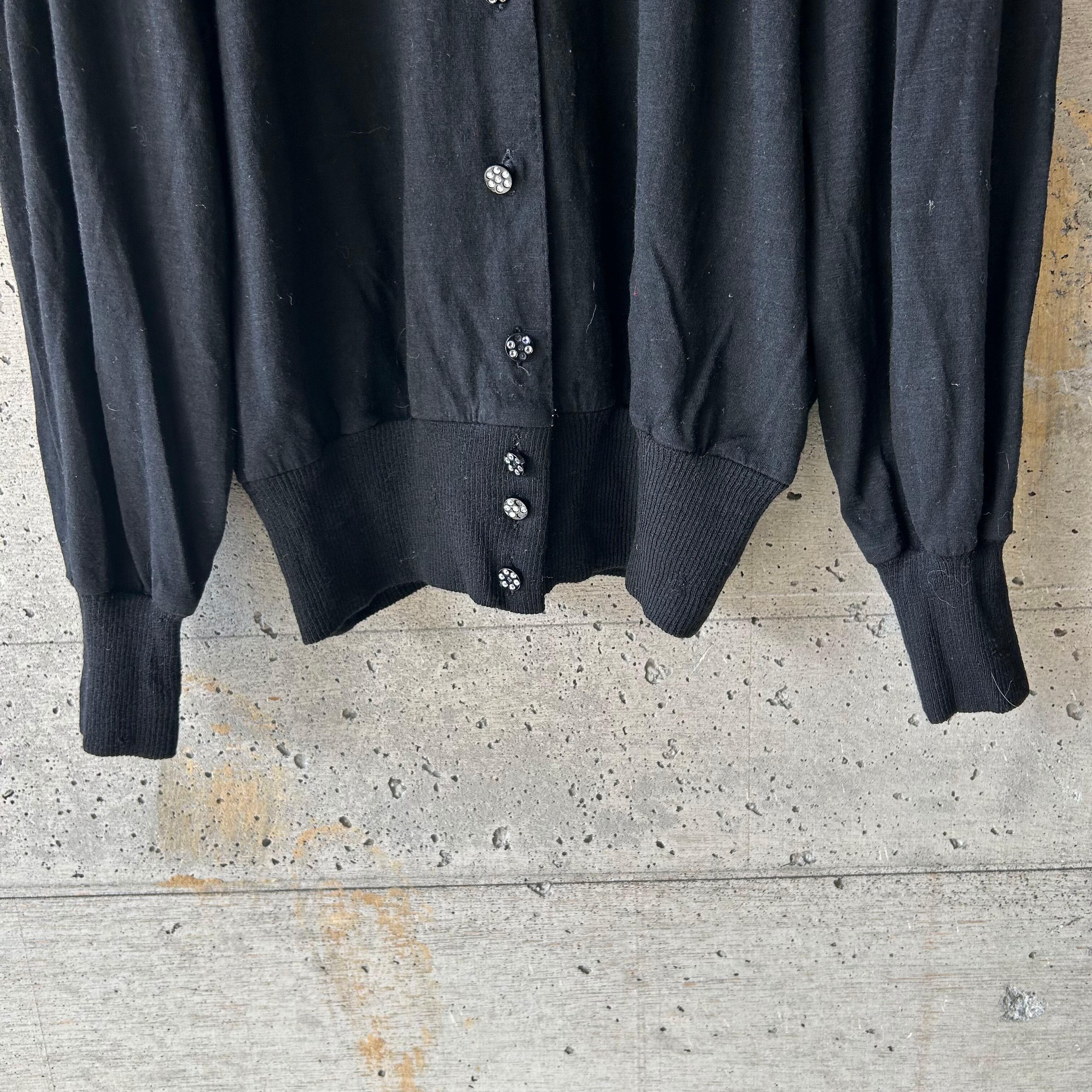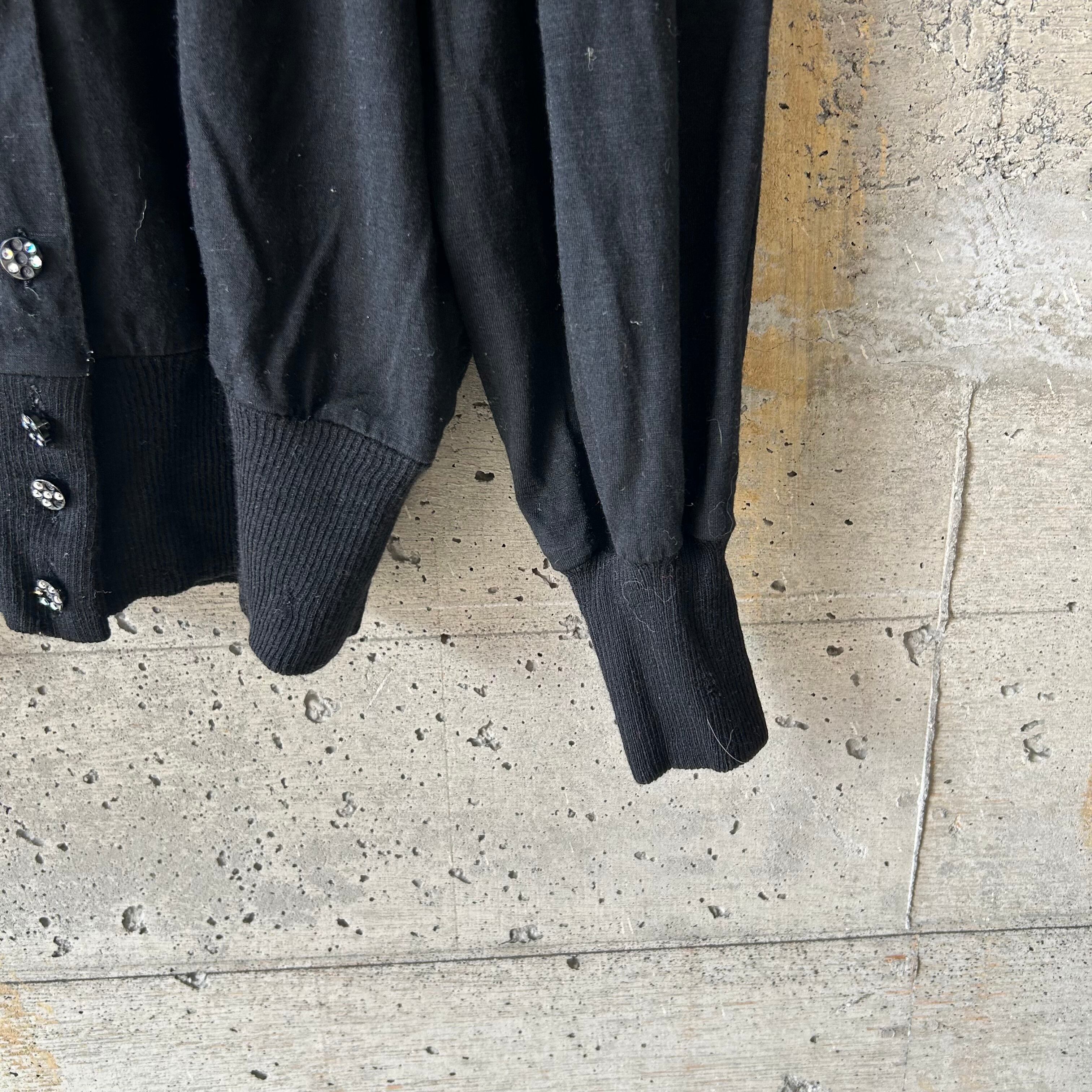 ベロアの飾りがついたハイゲージのニットカーディガンです。