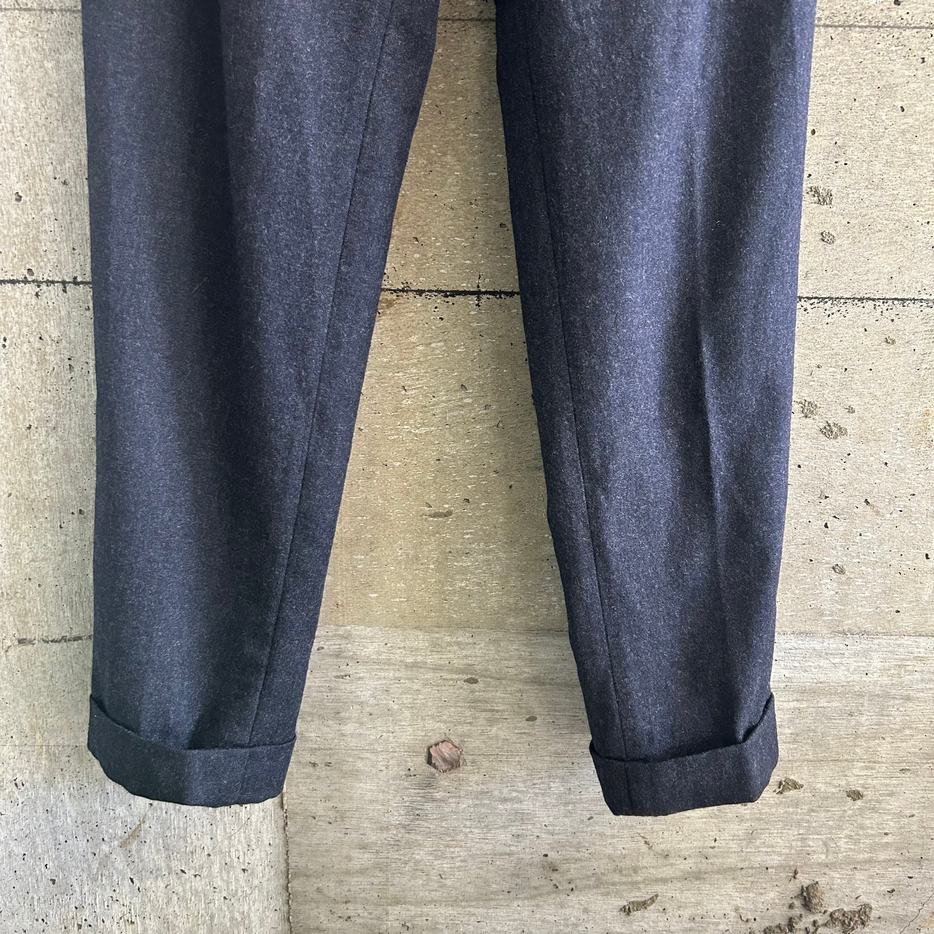 とってもシンプルな印象のパンツですが、デザインの効いたシャツを着てサスペンダーで吊るしてあげるととても強い印象になります。