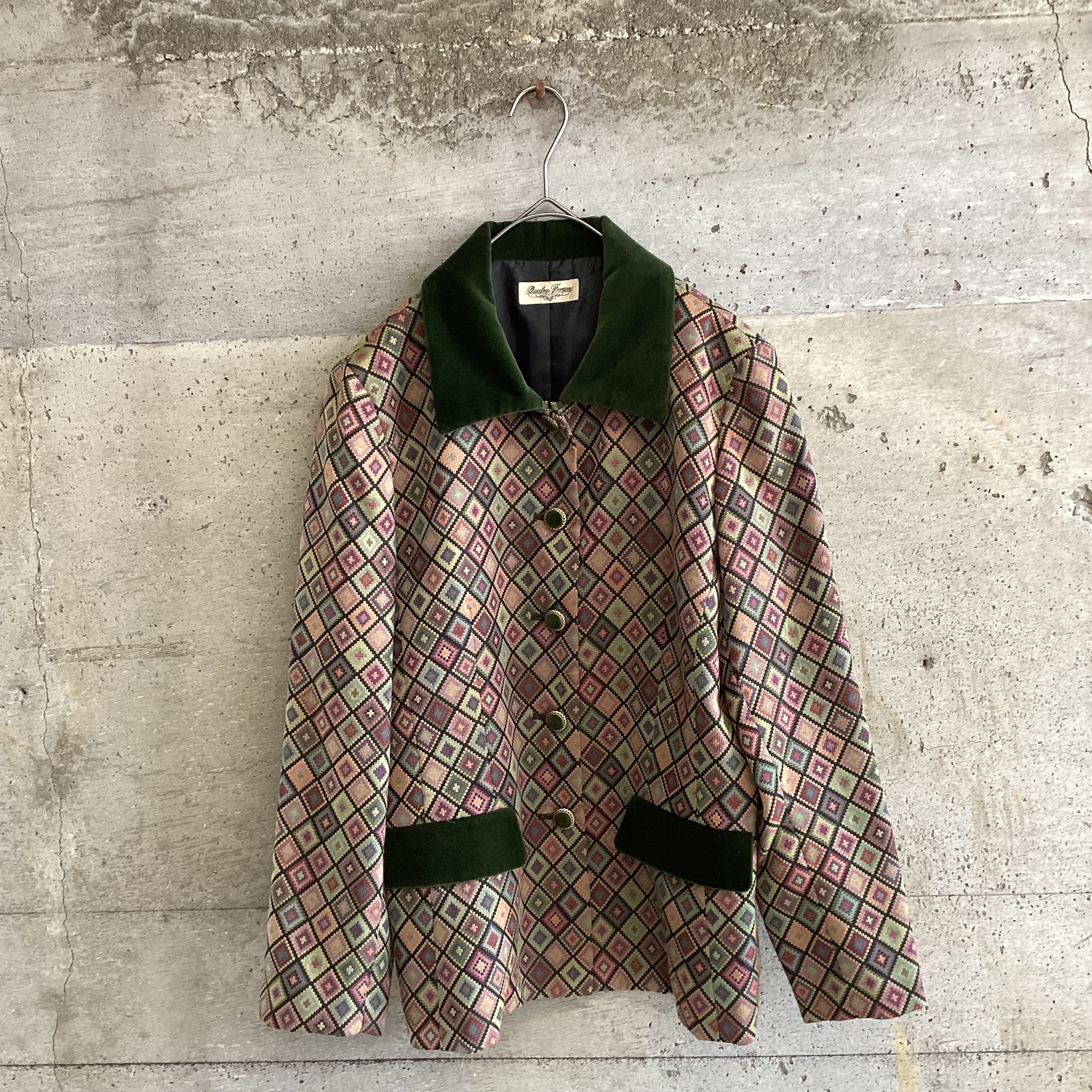 珍しい柄にポケットと襟のベロア部分がキュッと上品にしてくれています