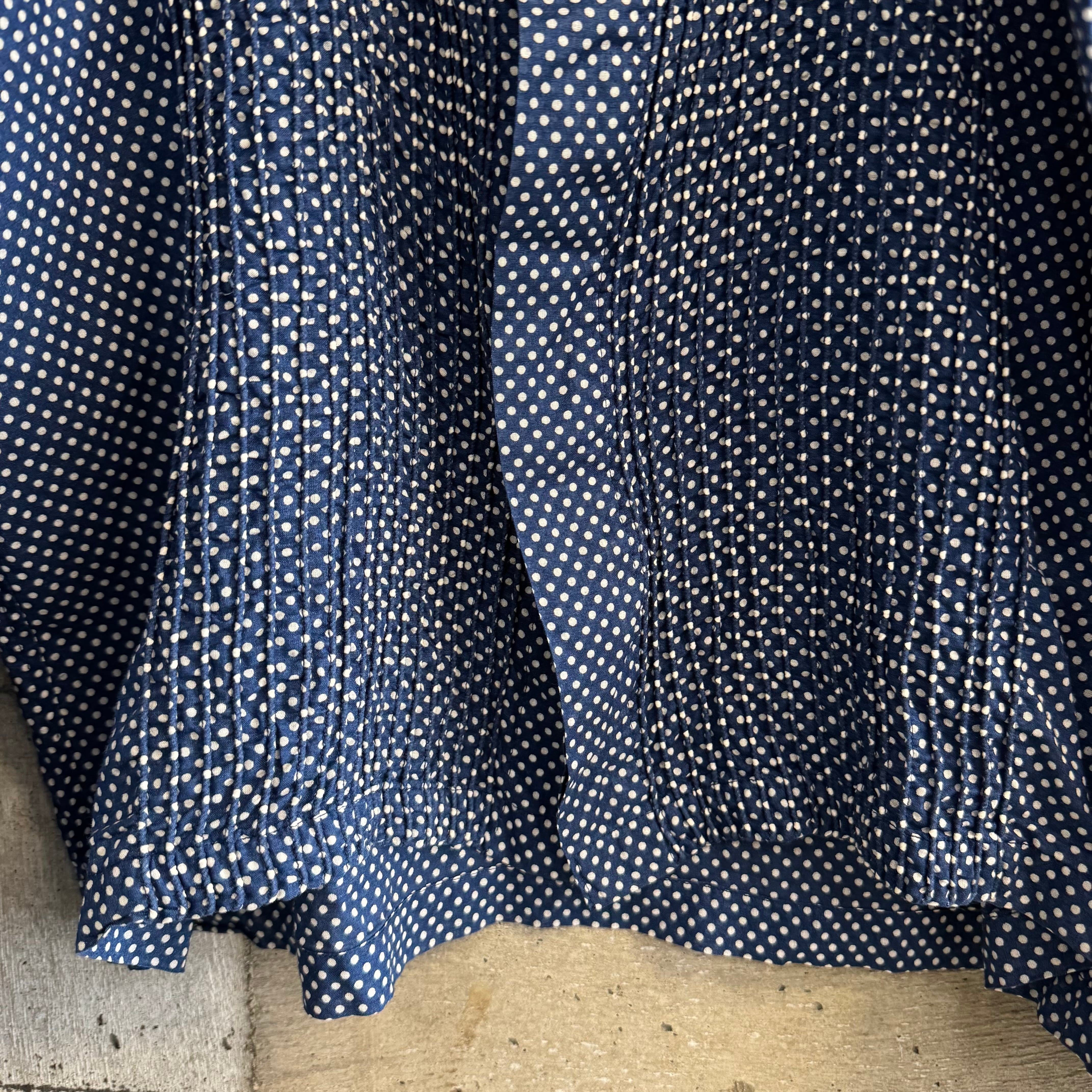 水玉柄なことでカジュアルな可愛らしさがありますが、胸元には全体的にピンタックが広がり、綺麗めな印象もあります。