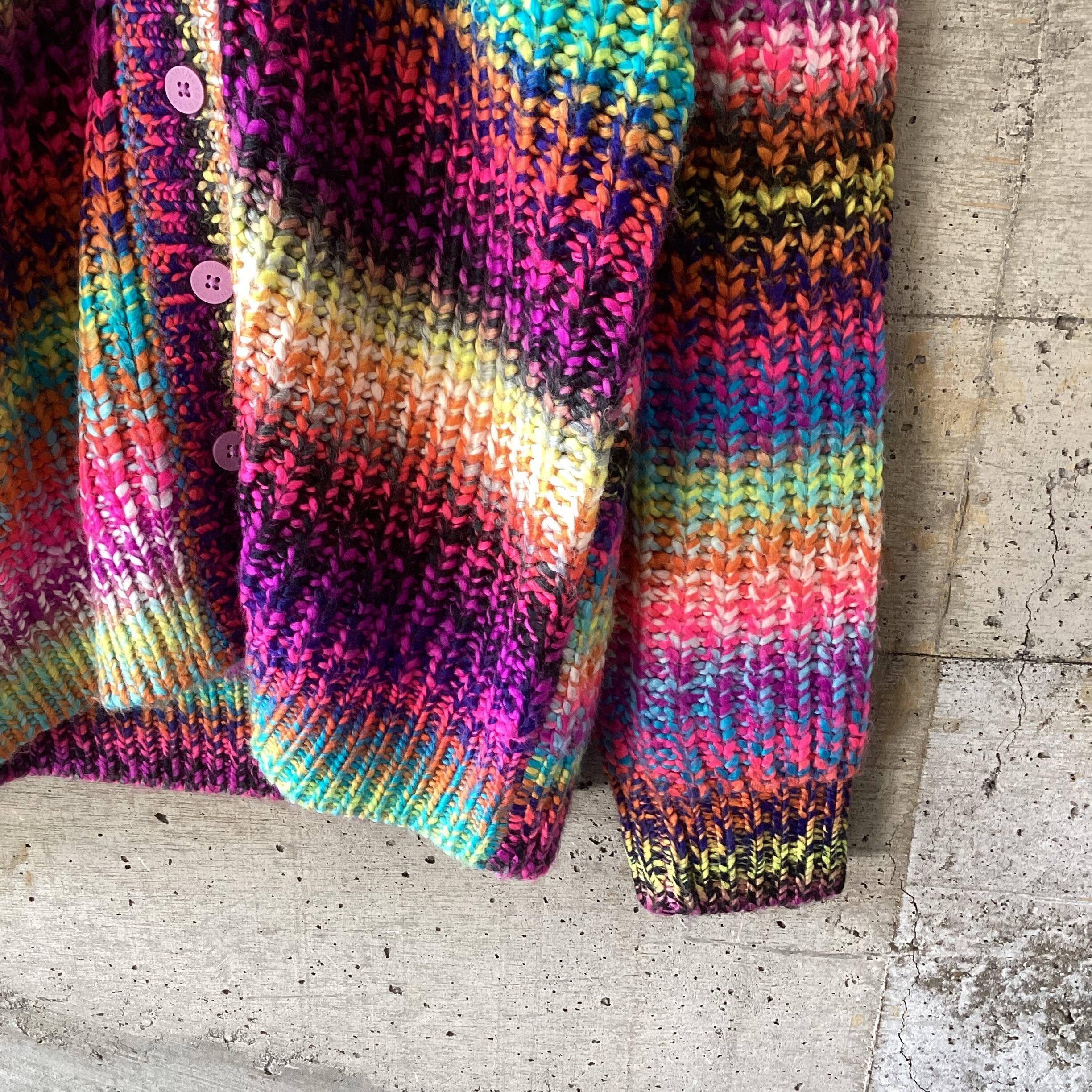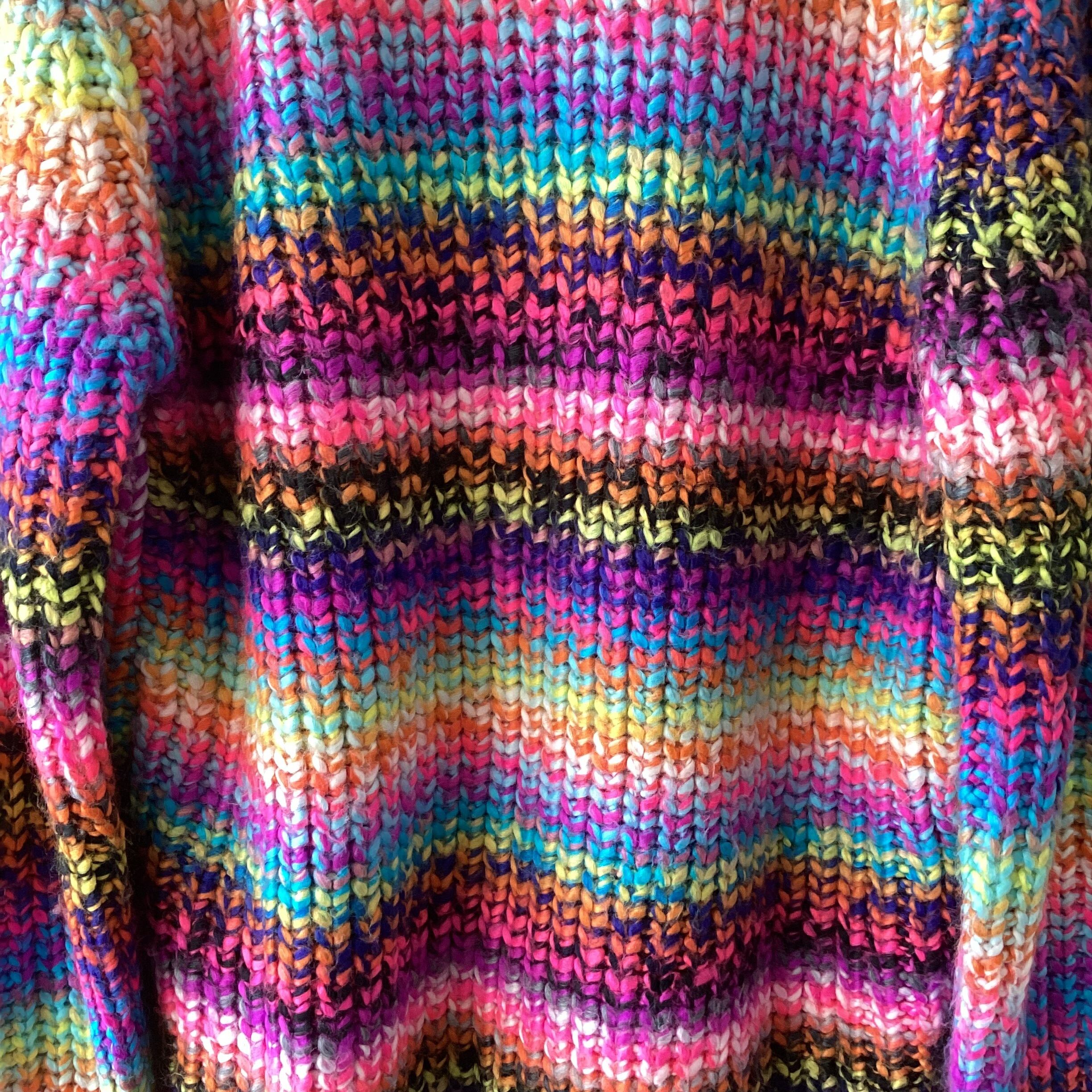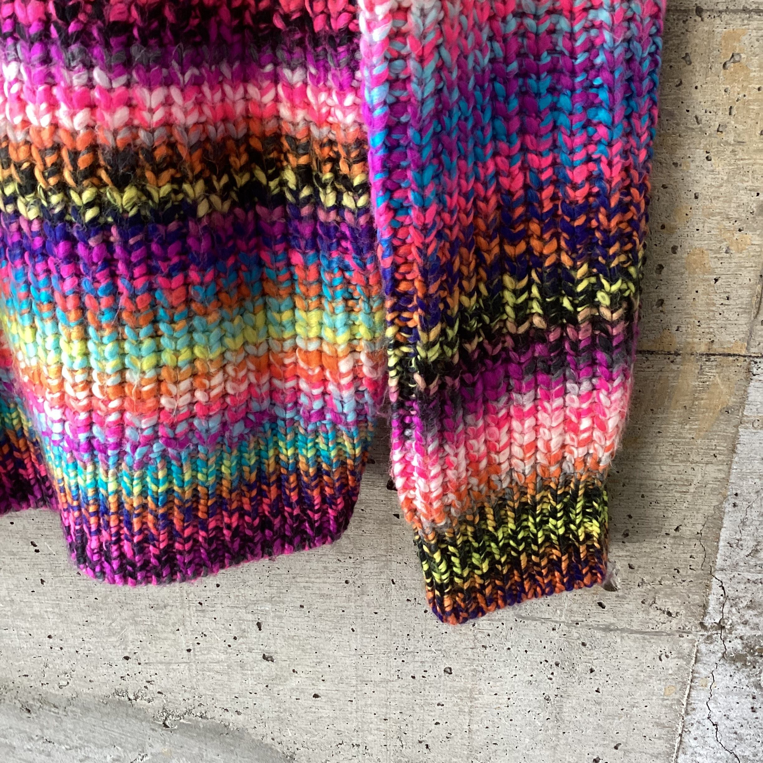 全ての色の切り替えが違和感なく繋がるように常に2種類の毛糸が使われているところにこだわりを感じるスペシャルな1着です。