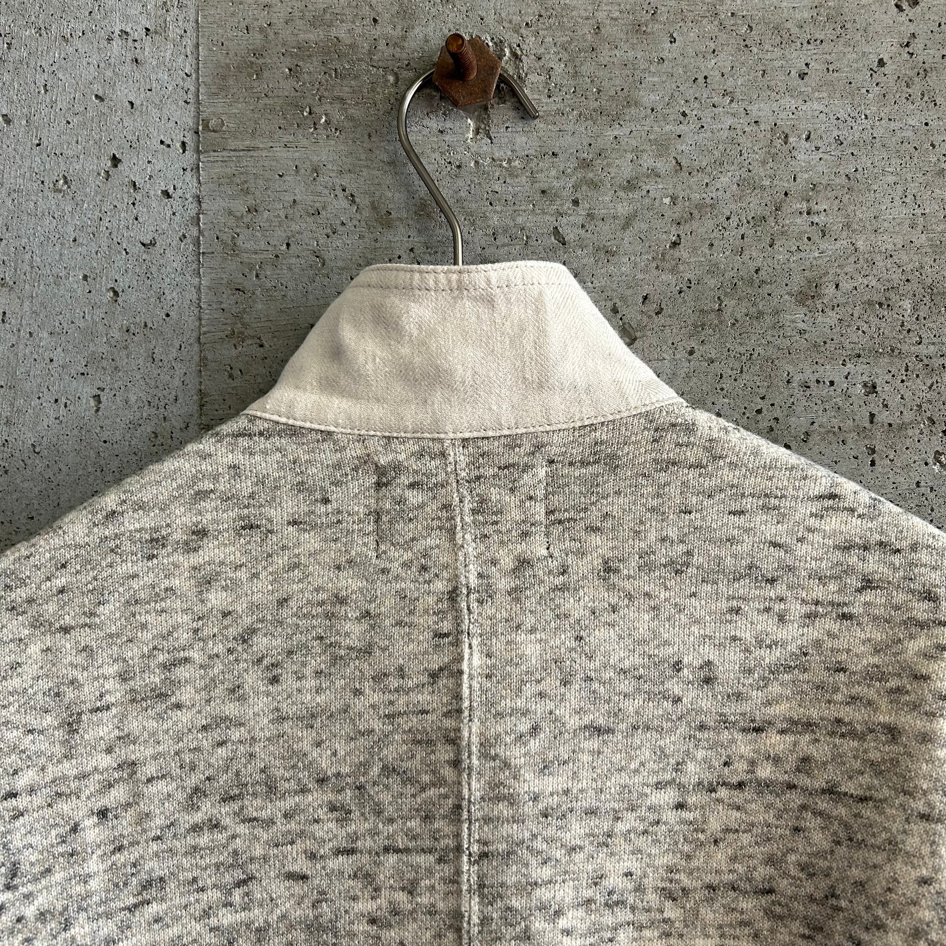 前見頃はくたっとしたオフホワイトのリネン生地が使われており、後見頃のスウェット生地とドッキングしています。